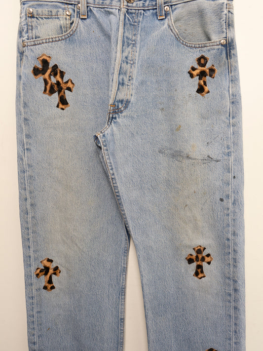 Blue Leopard Patched Levis 501