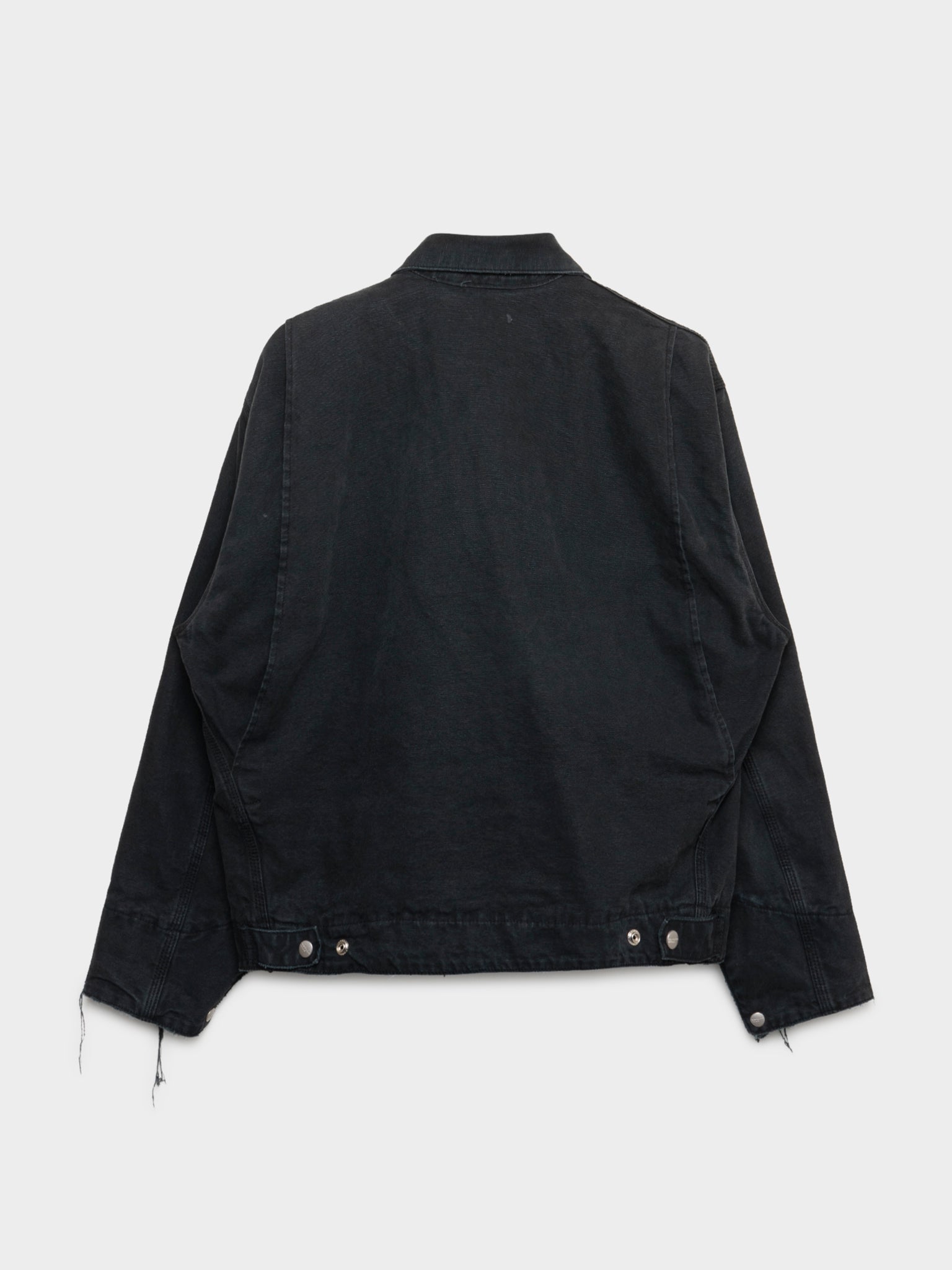 A faded black Enfants Riches Deprimes zip up work jacket with really nice distressing throughout and their logo embroidered on the chest.