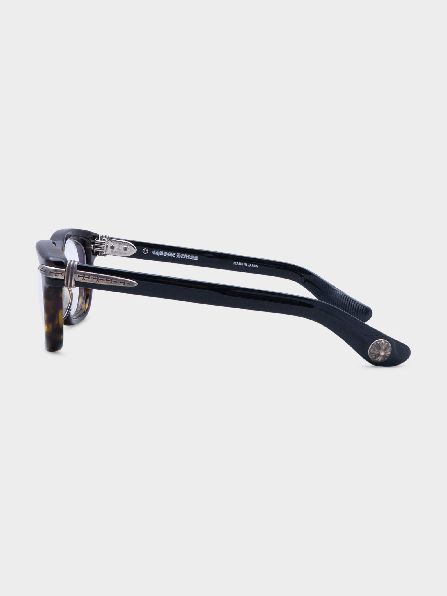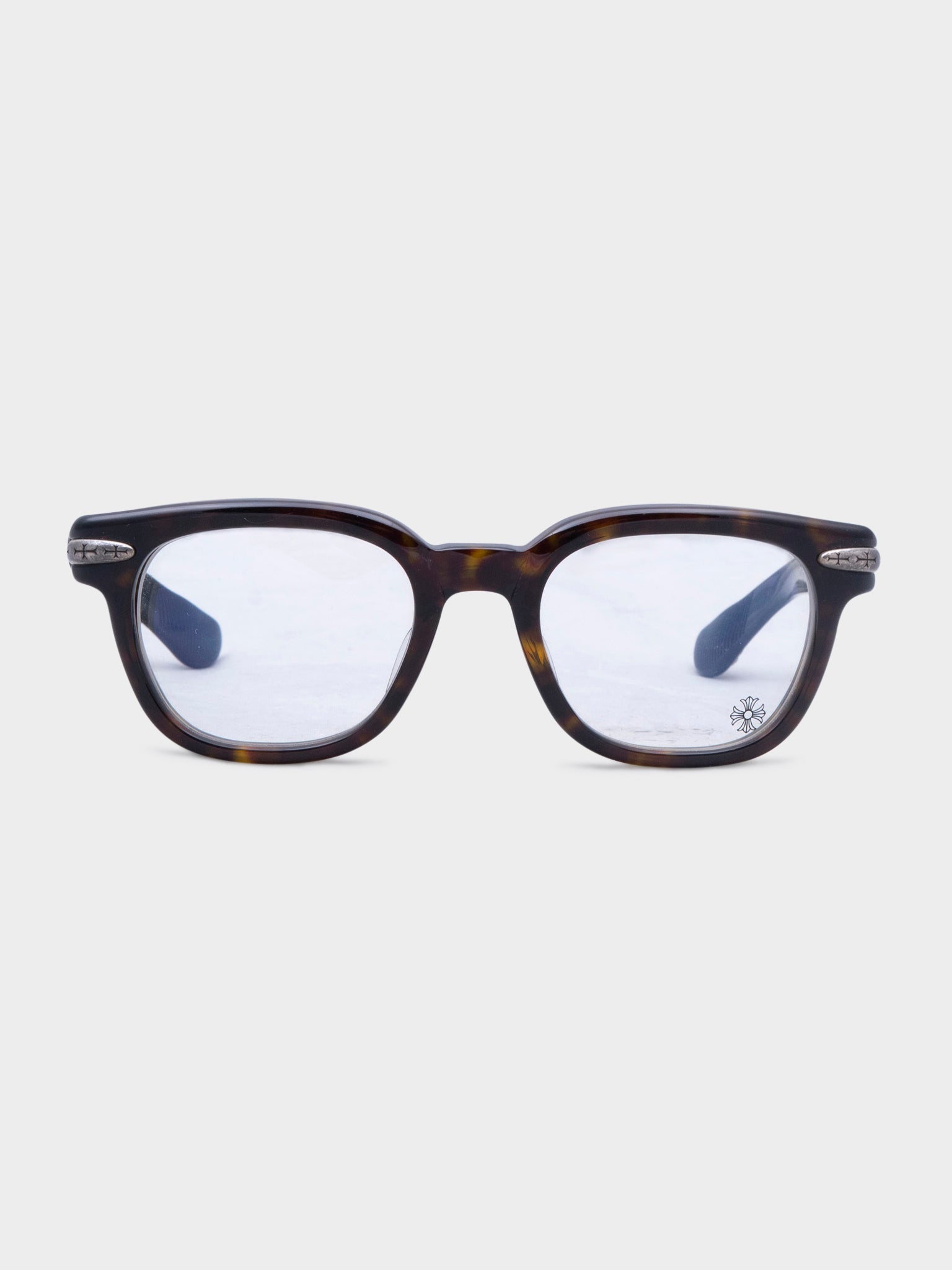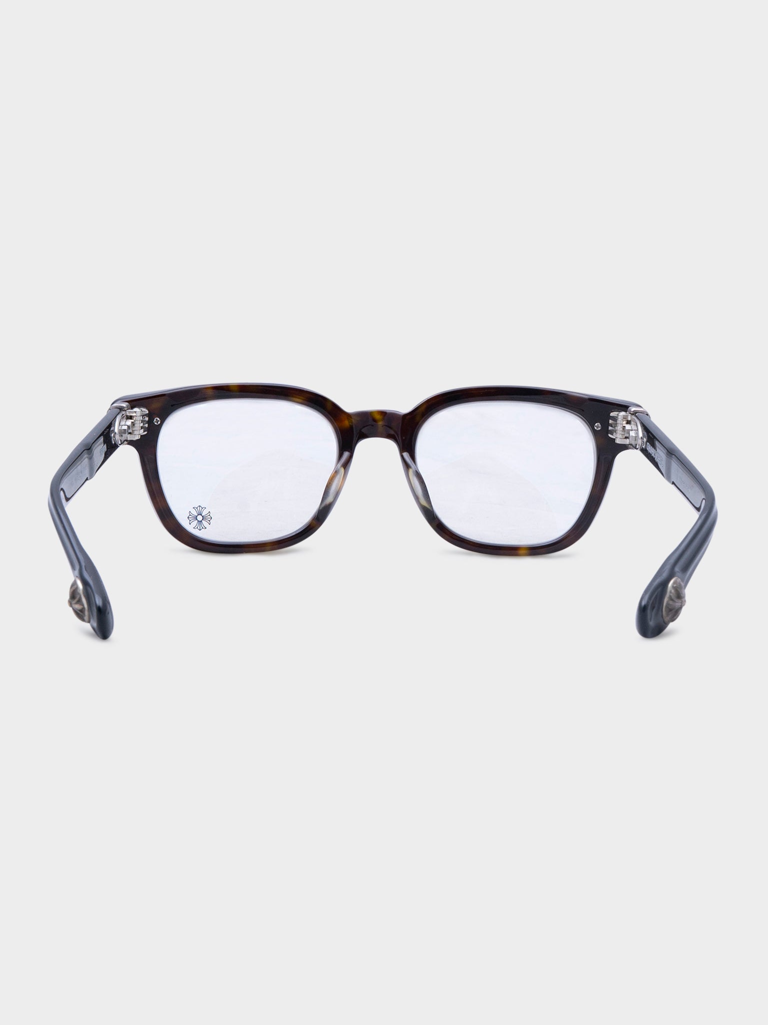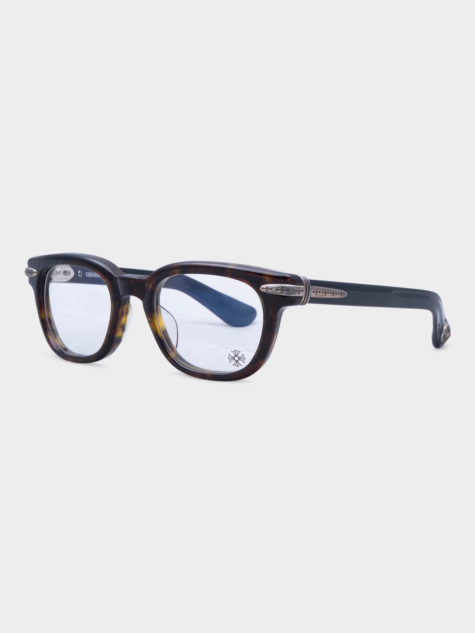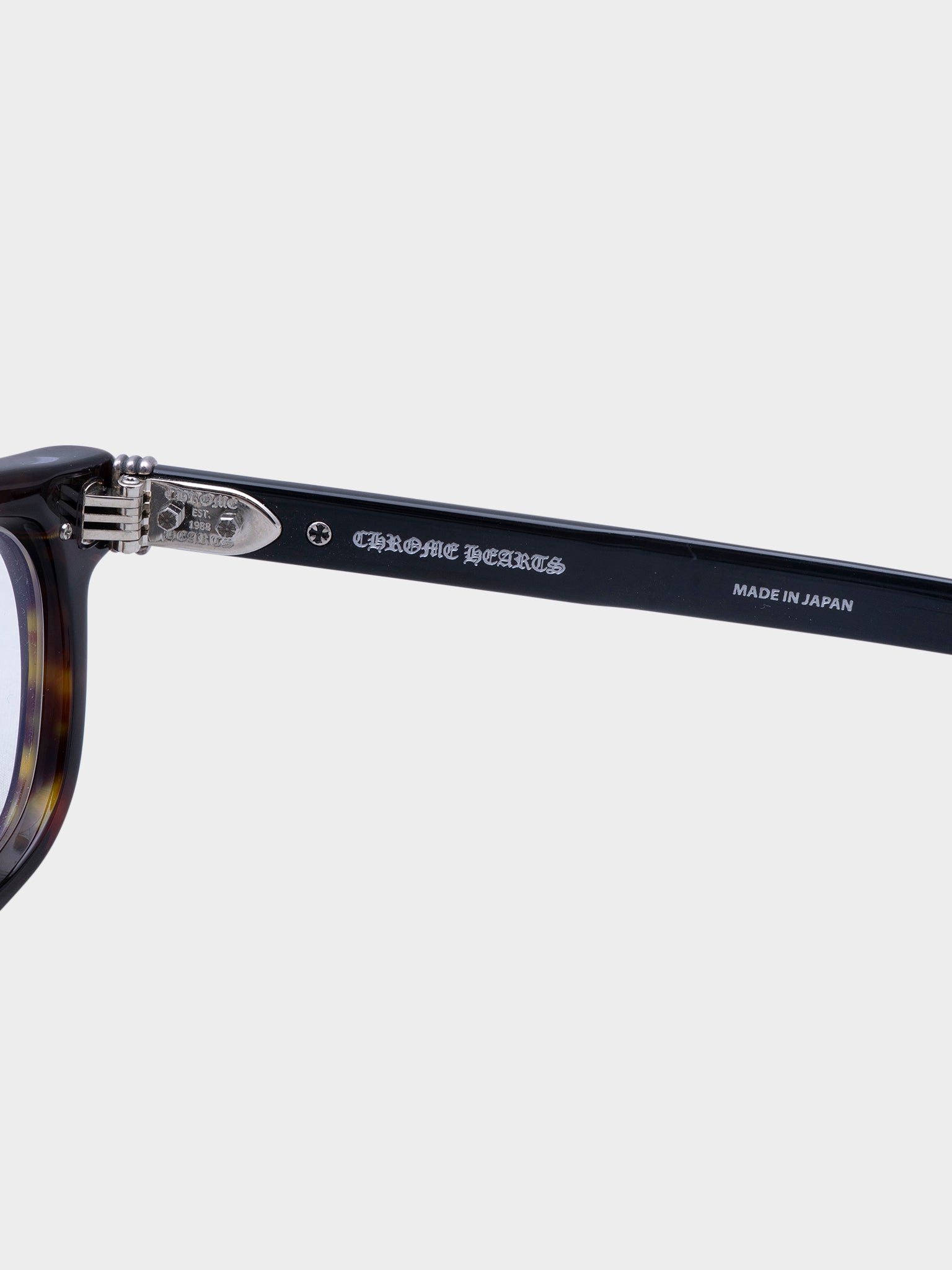 A pair of Chrome Hearts tortoiseshell 'Drippin' glasses with sterling silver hardware along the temples
