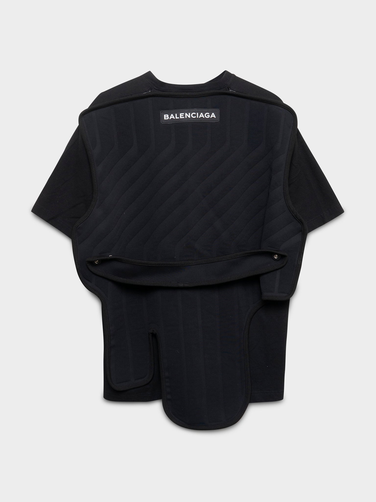 A black Balenciaga tee with large car floor mat on the back from their FW17 collection.