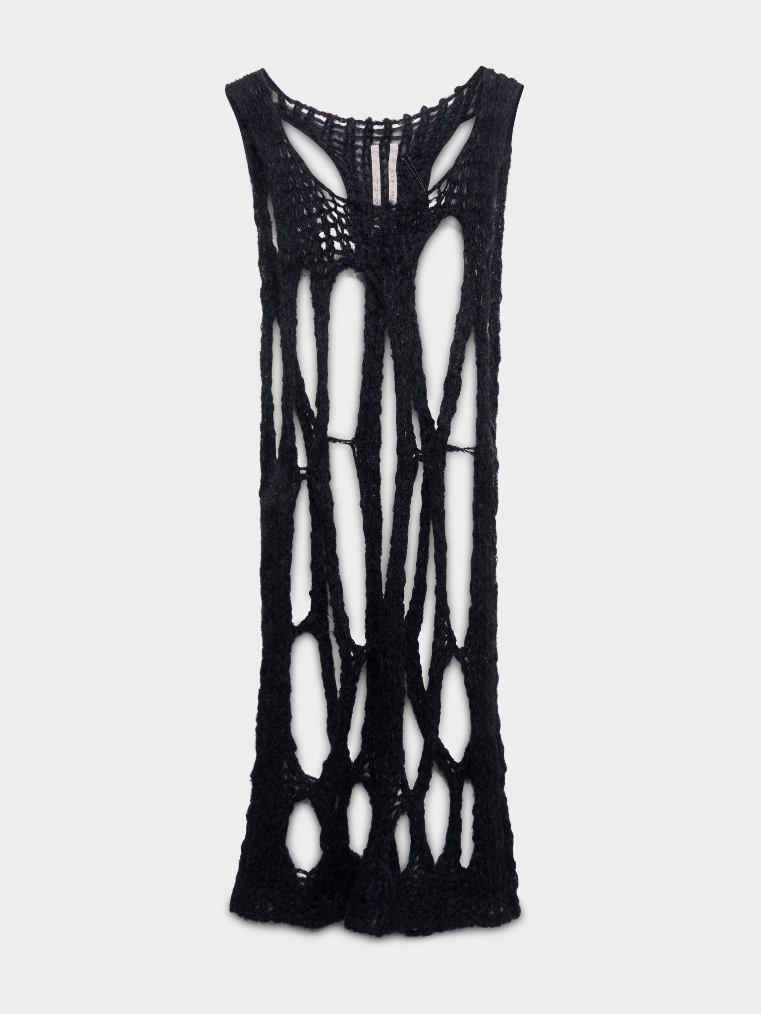 A fully cut out sleeveless sweater from Rick Owens' FW22 collection 'Strobe'