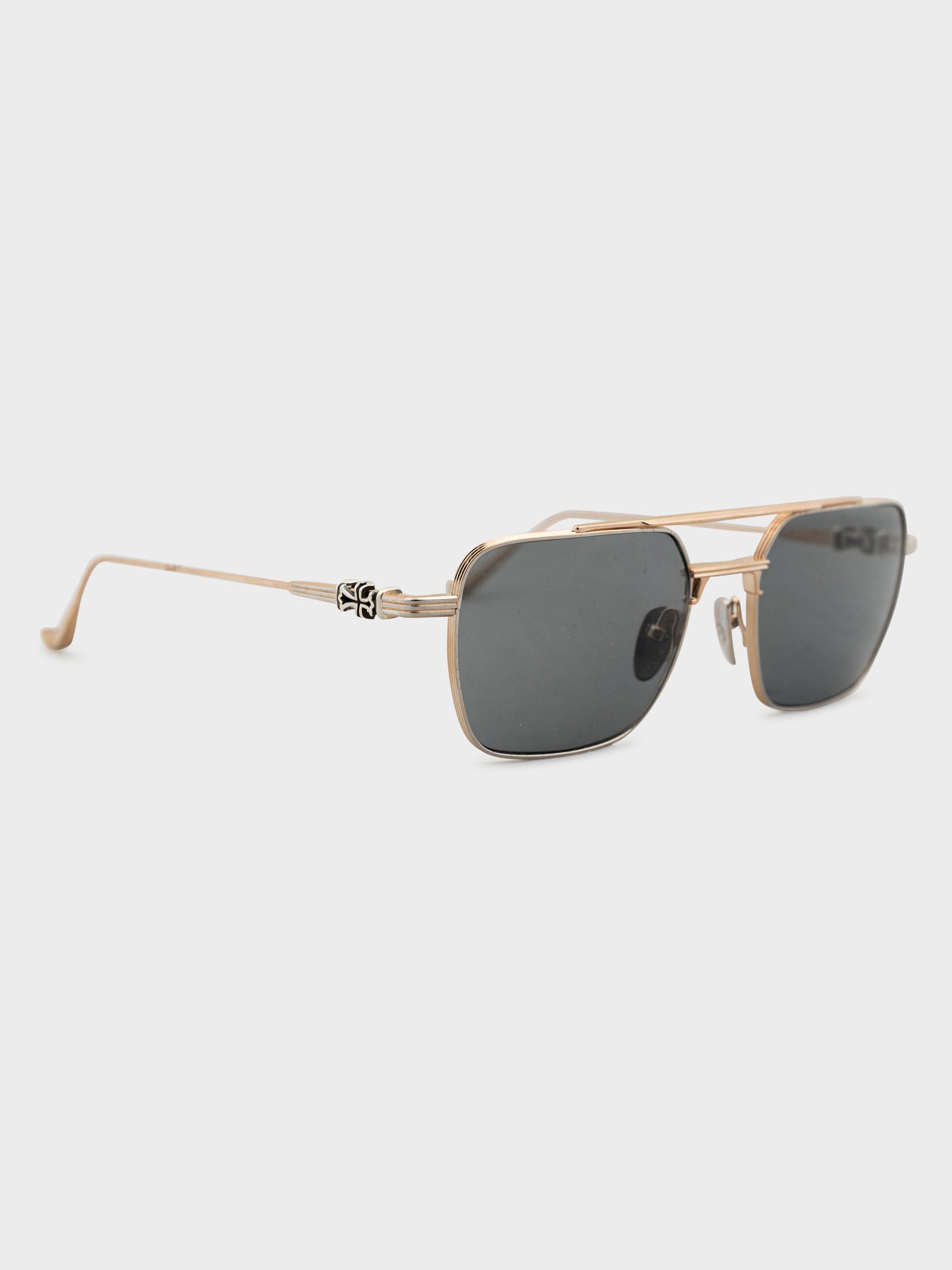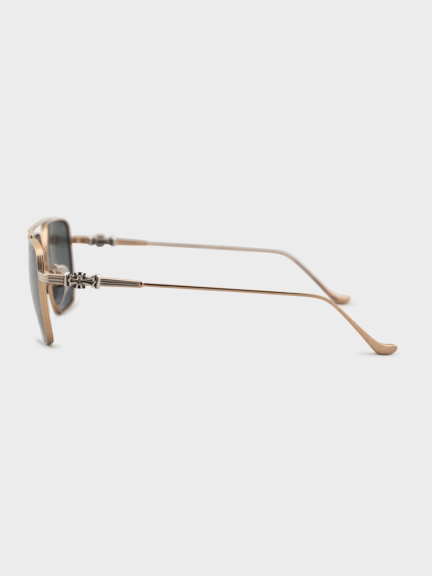A super sick pair of Gold Cross Sunglasses from Chrome Hearts. These glasses feature a lovely Gold Exterior with black tinted frames.