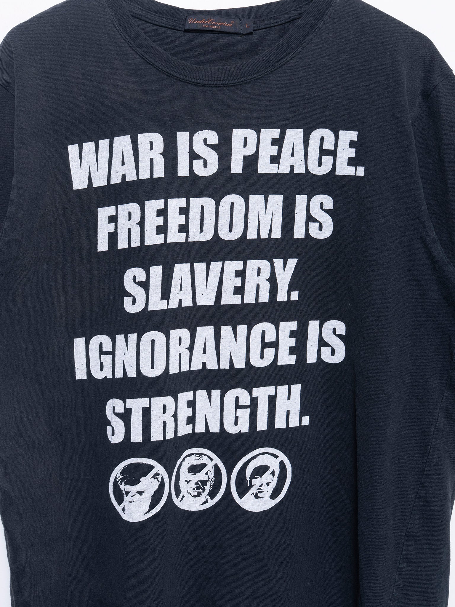 Featuring a quote from George Orwell's 1984, this early 2000's Undercover tee let's us know that war is peace, freedom is slavery, and ignorance is strength.