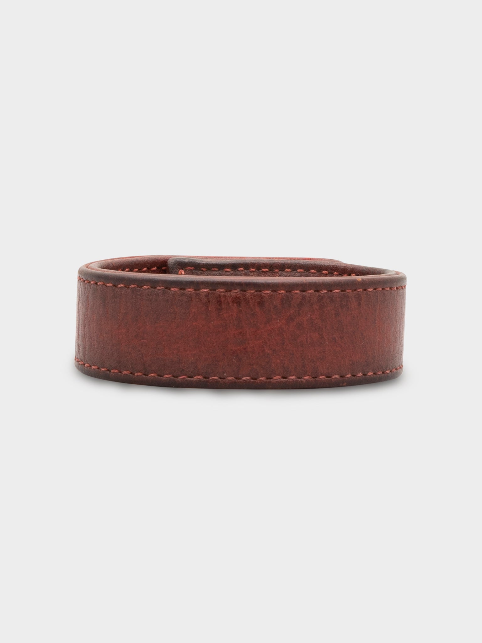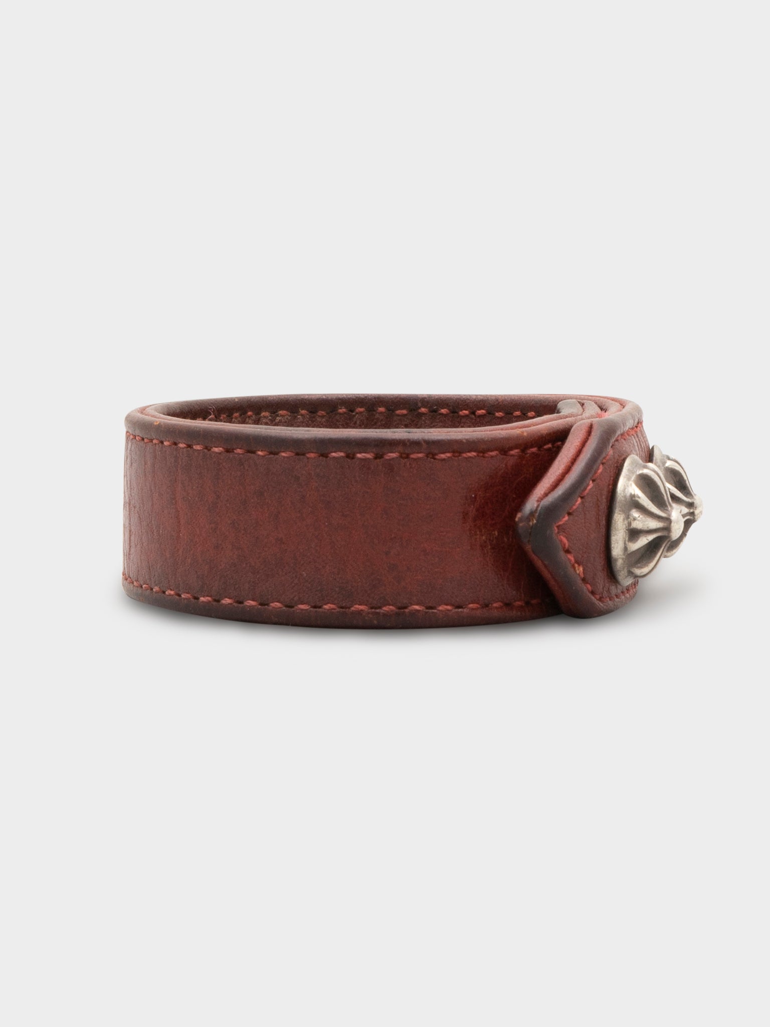 A brown leather Chrome Hearts bracelet with sterling silver plus snaps