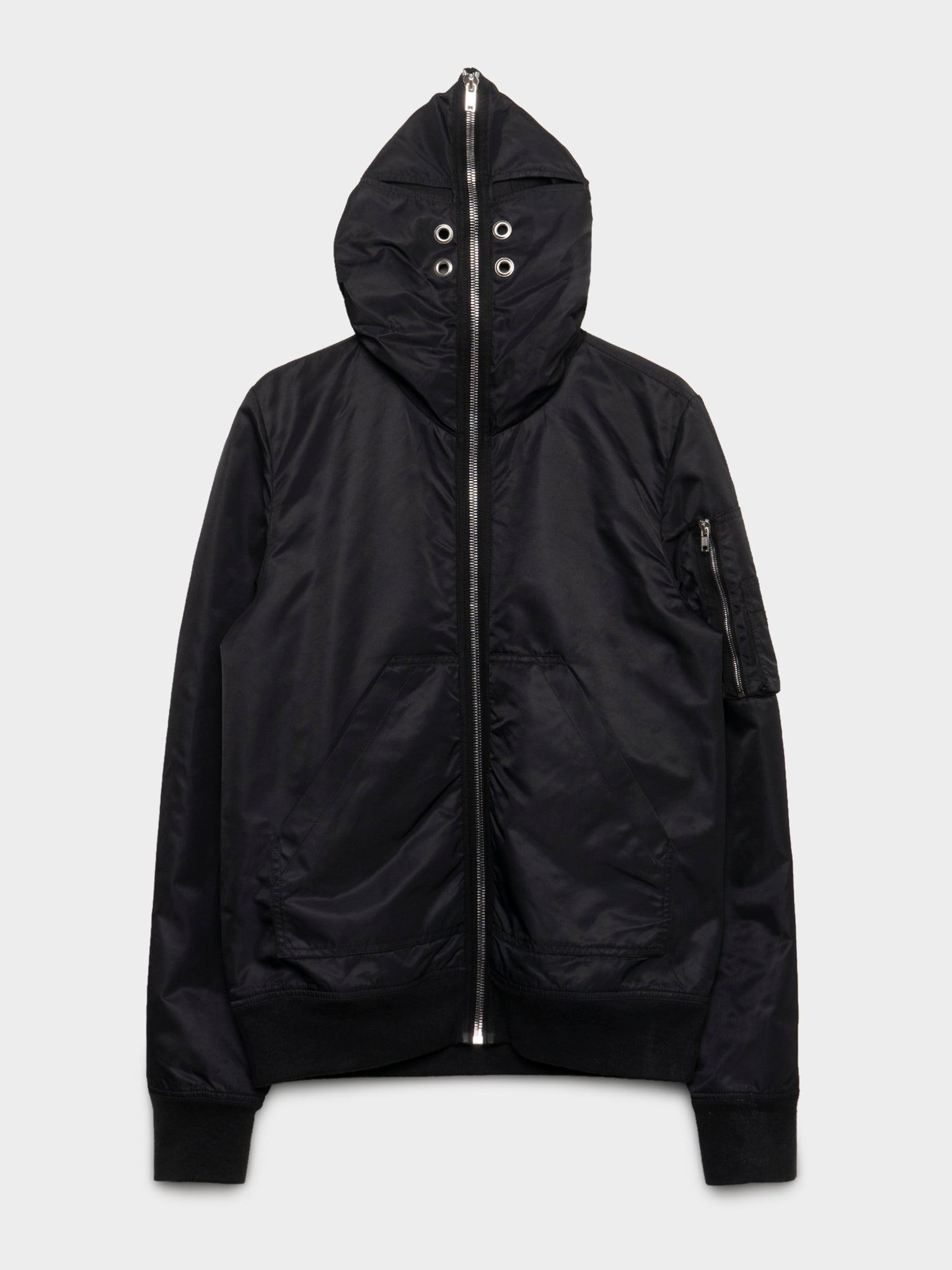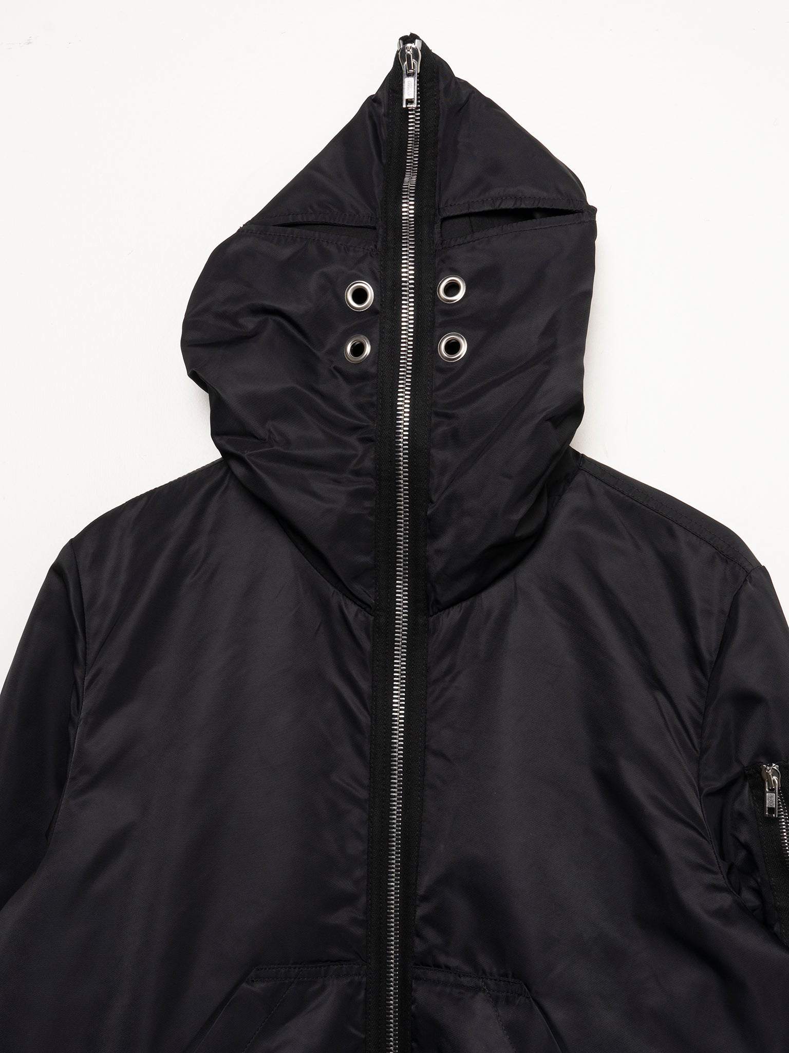 From Rick Owens's SS24 collection 'Lido' comes this lightweight nylon full zip gimp jacket with eyelets on the closed hood.