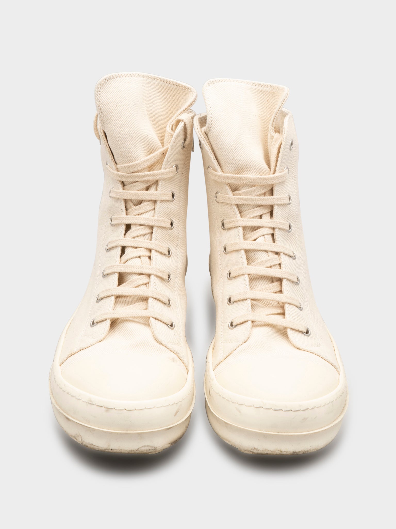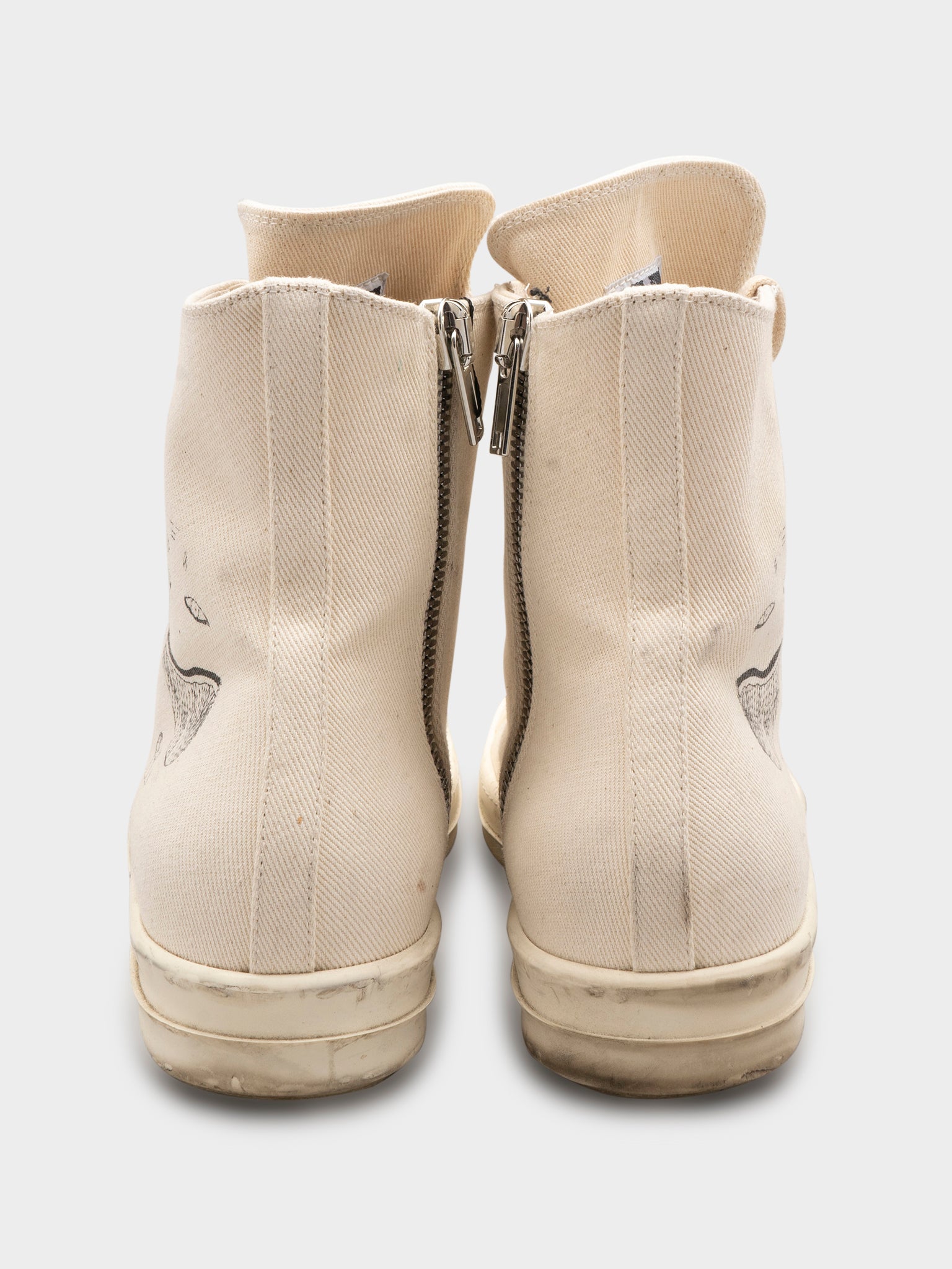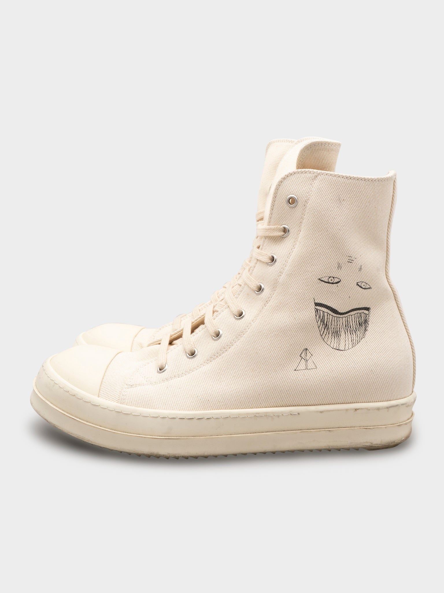 A pair of Paris exclusive Rick Owens canvas Ramones with these creepy drawn on faces on the side.