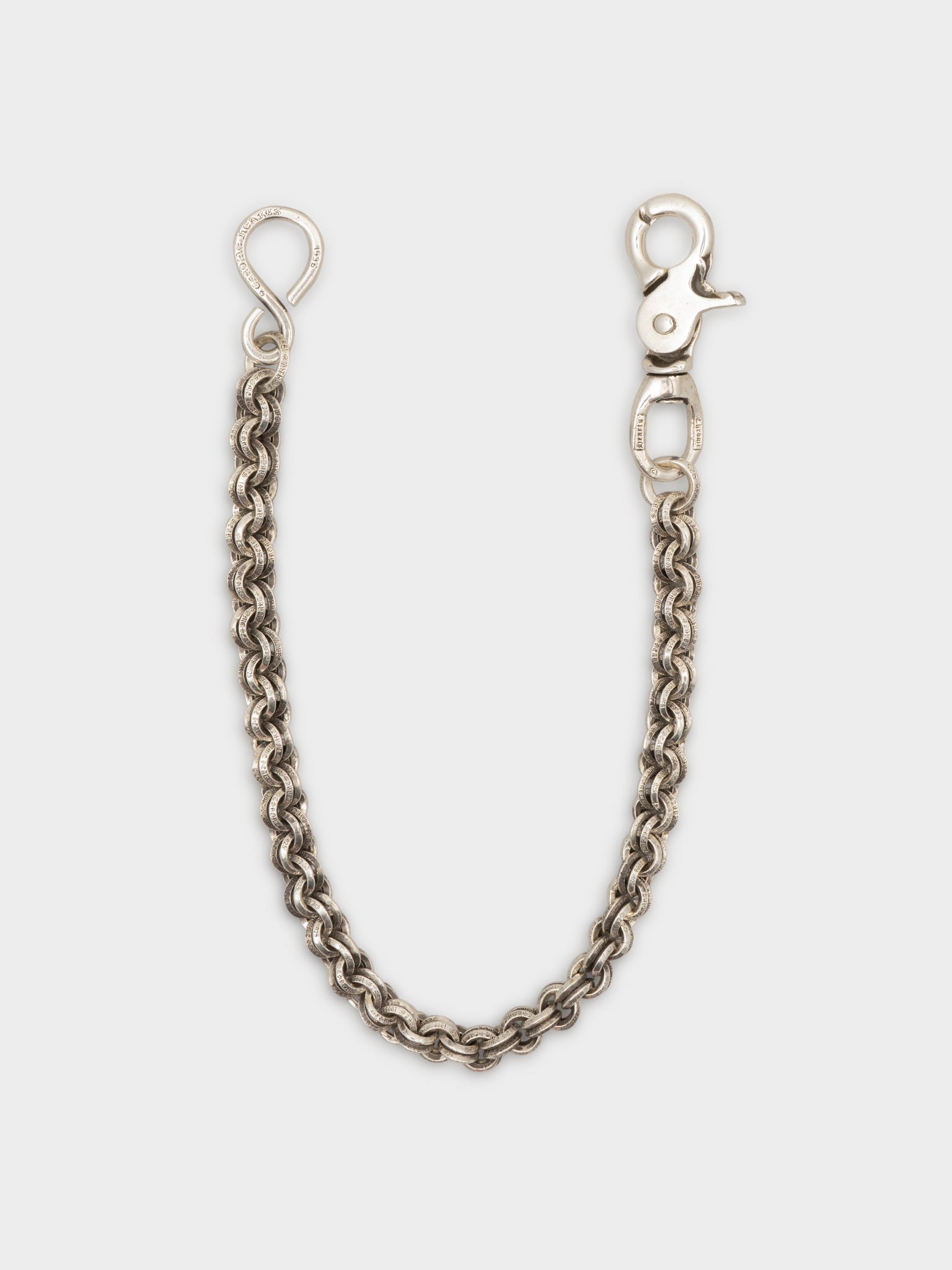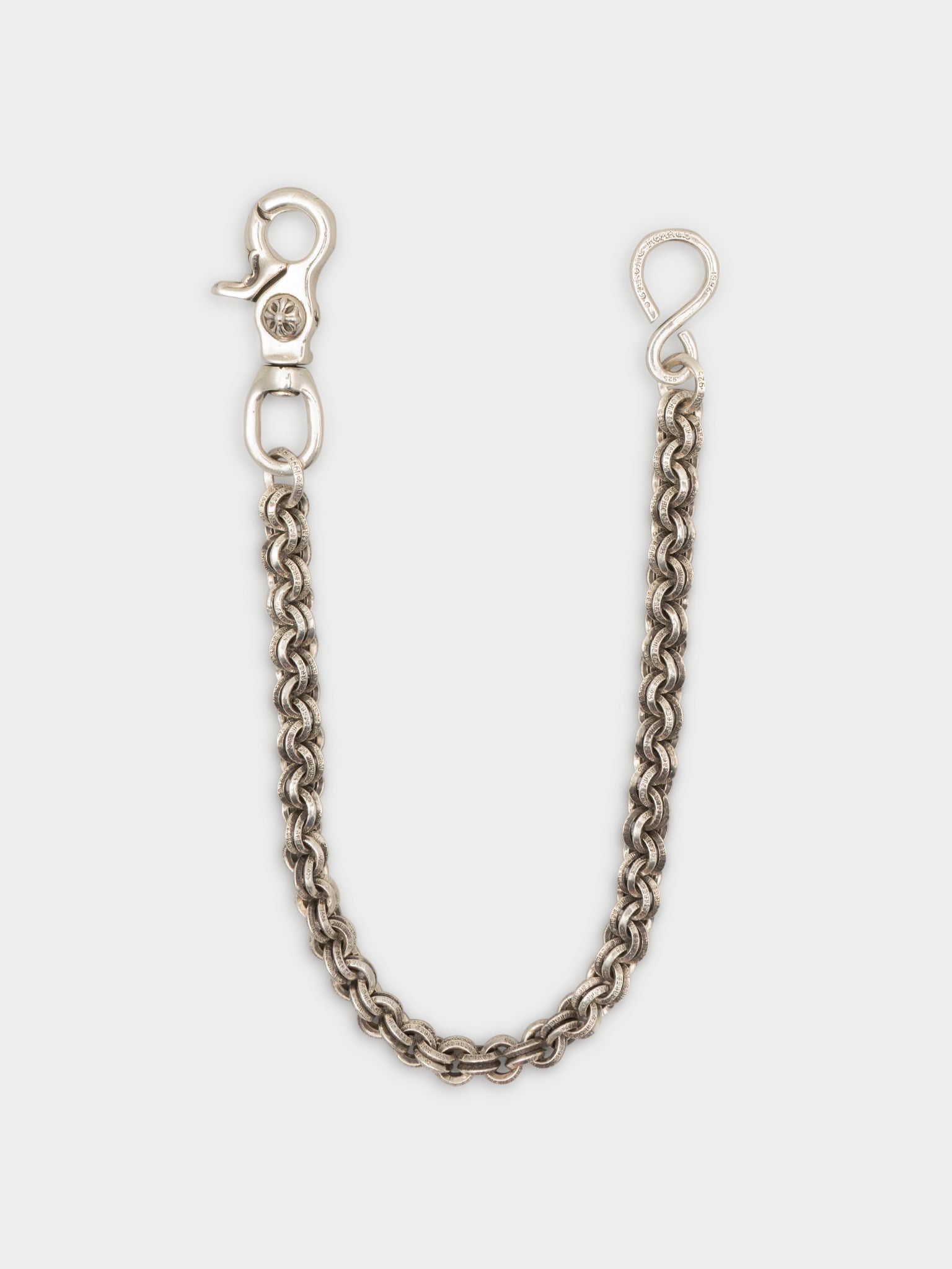 A hefty 17" sterling silver Chrome Hearts Double B wallet chain, the thicker version of the paper chain, with one clasp and one hook