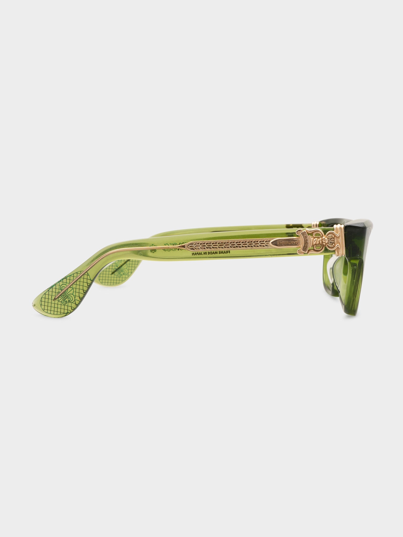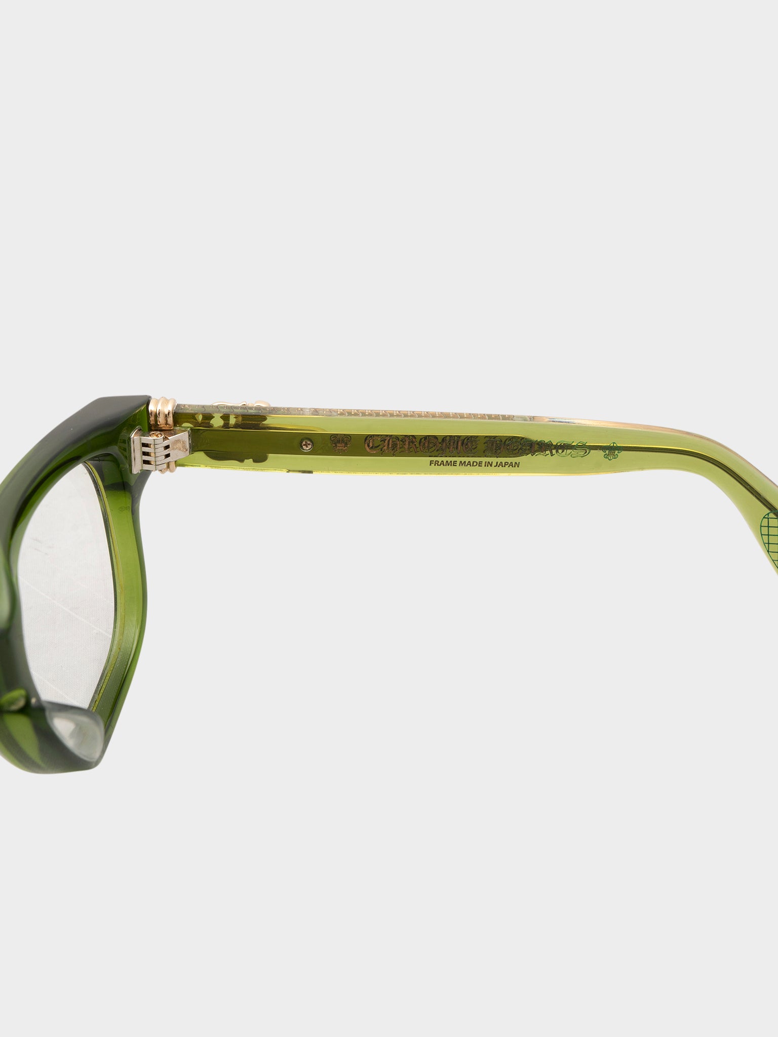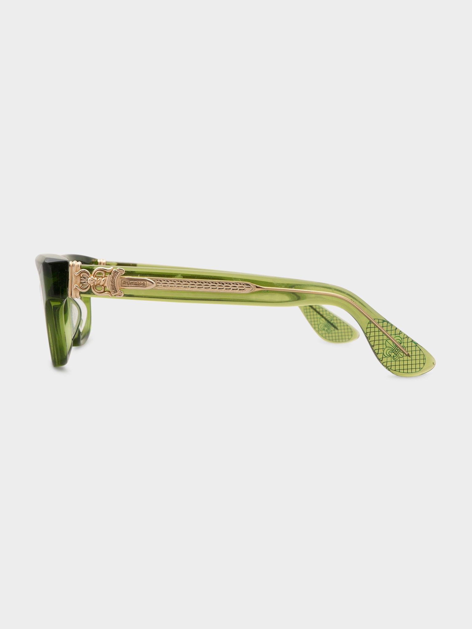 A pair of olive Chrome Hearts Cuntvoluted glasses with 18k gold plated hardware on the temples