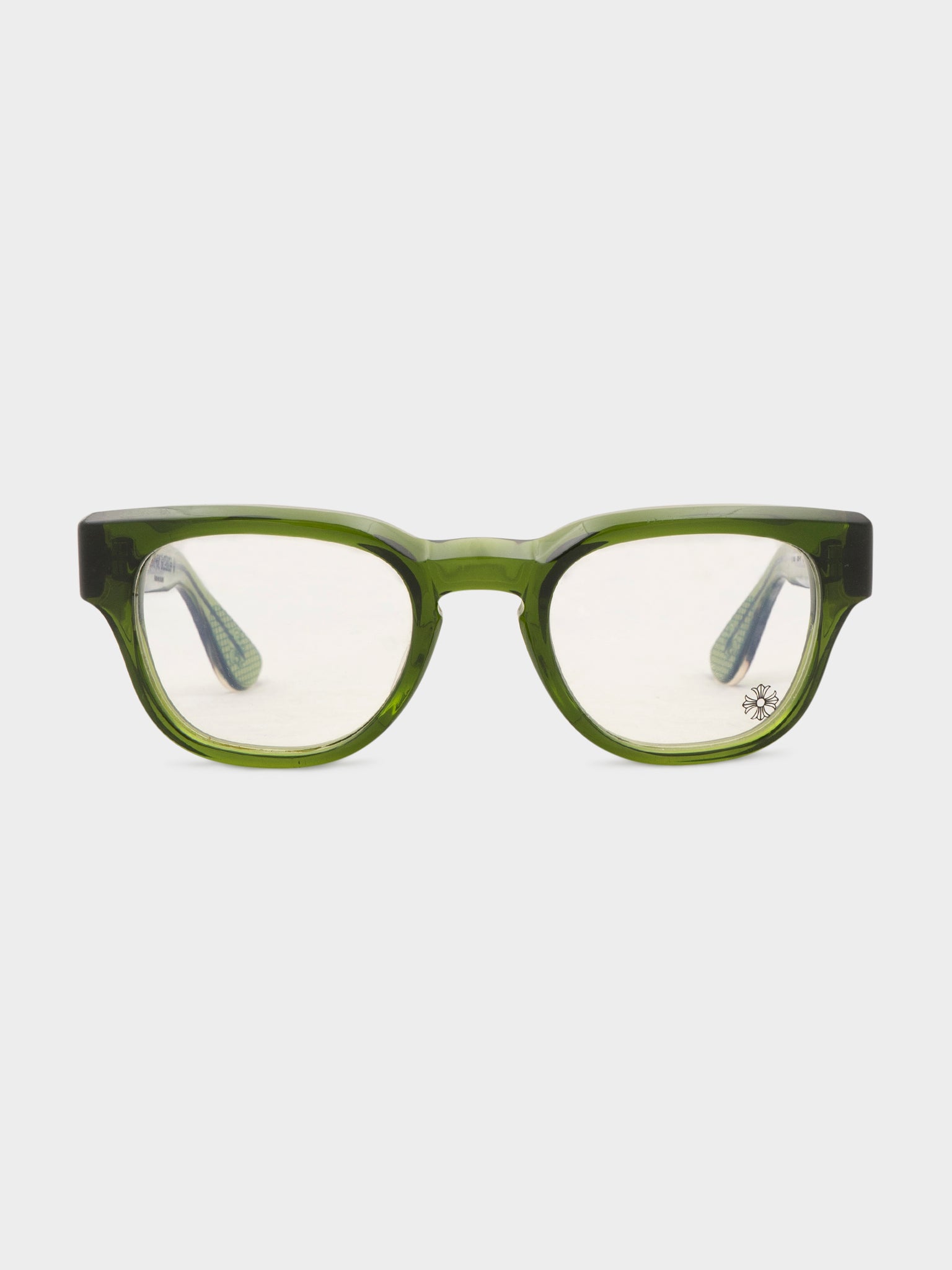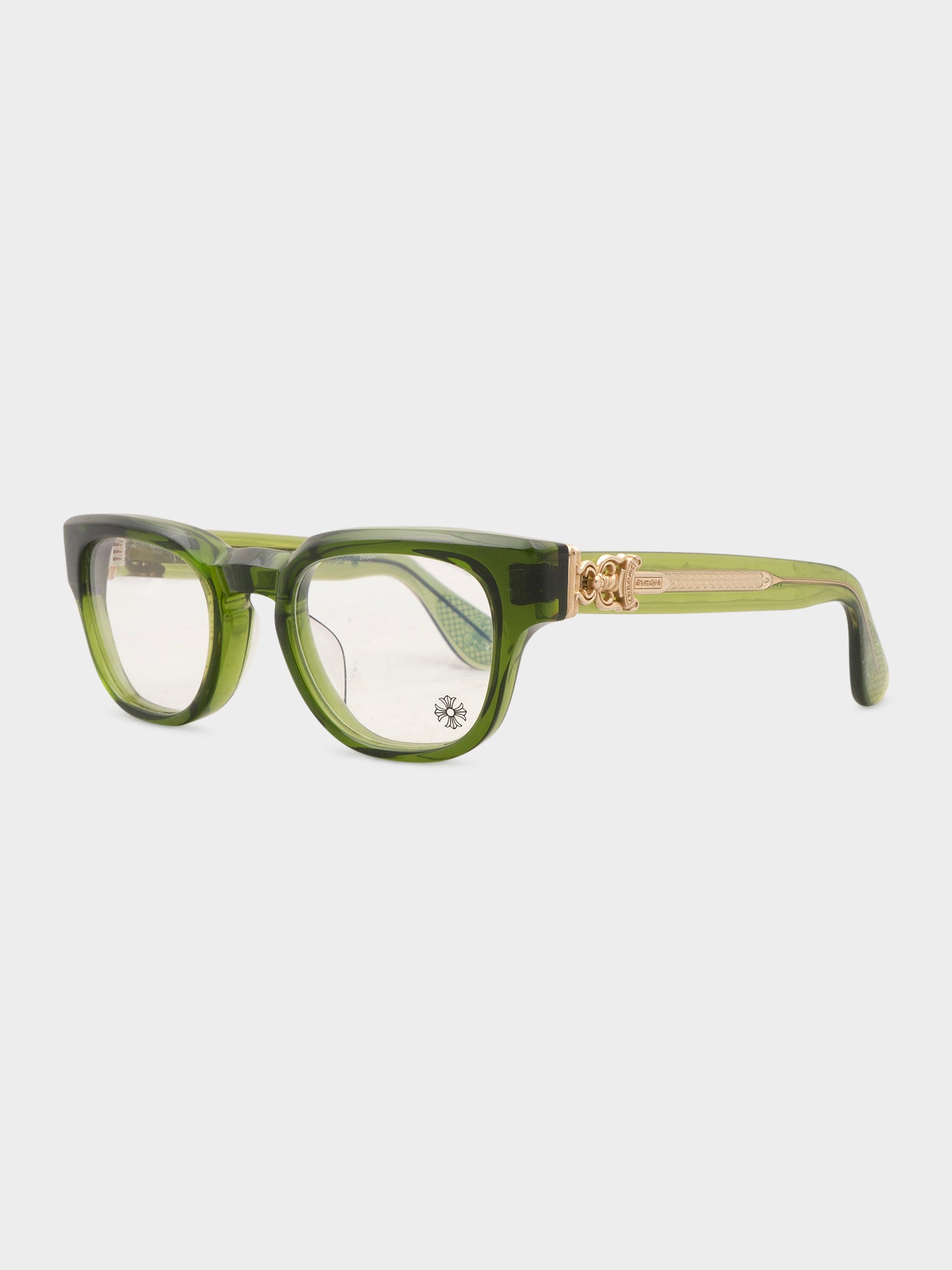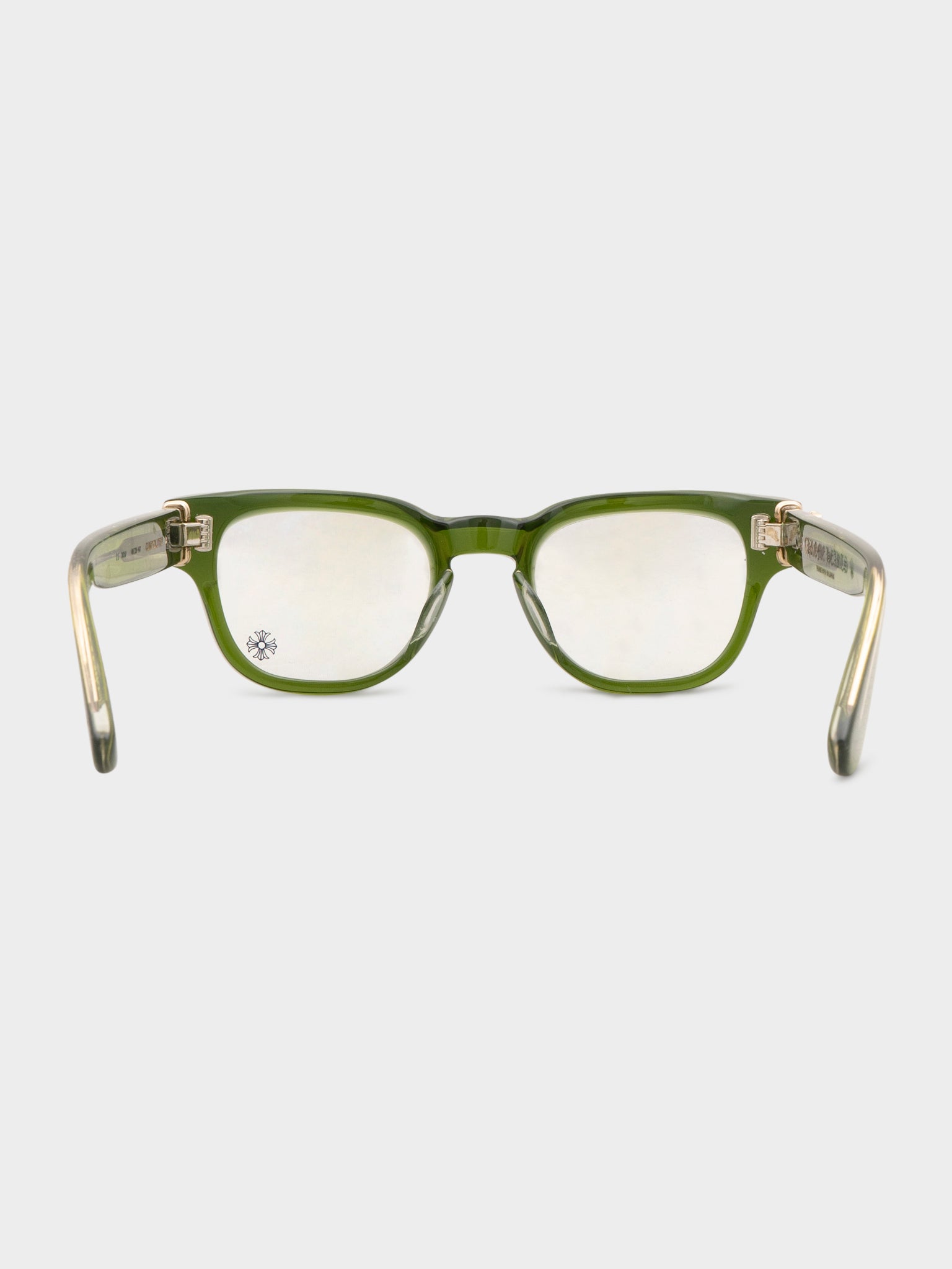 A pair of olive Chrome Hearts Cuntvoluted glasses with 18k gold plated hardware on the temples
