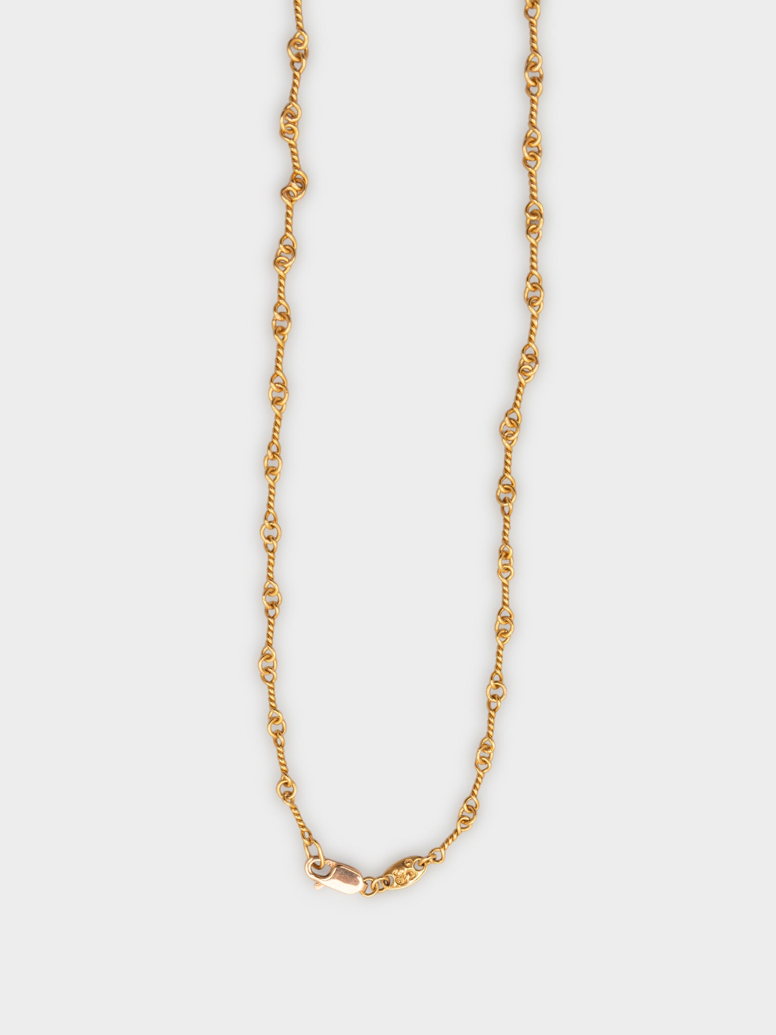 A thin 22k gold Chrome Hearts twist chain with tiny "knots" along the way