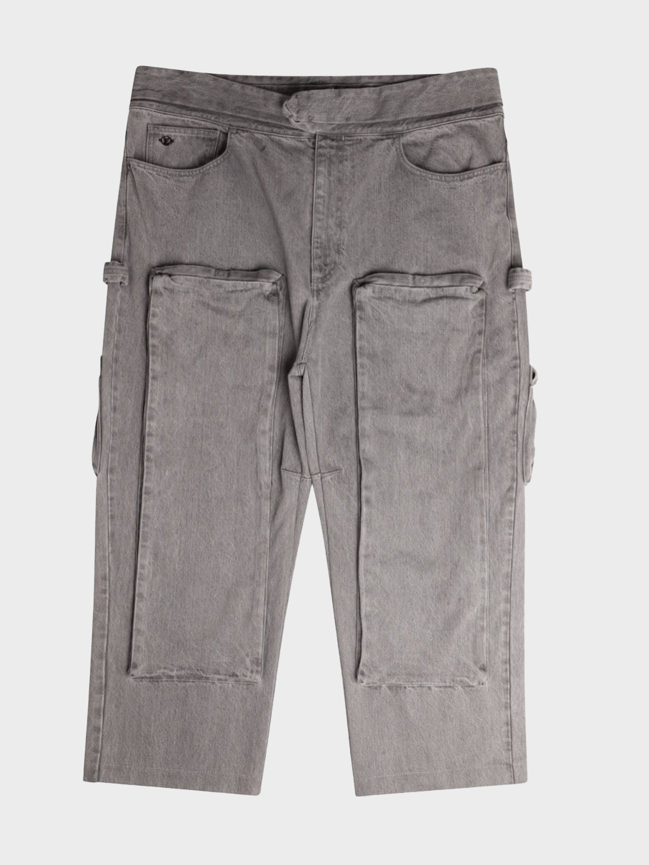 From Louis Vuitton's 2021 collection comes these crazy gray pants with large cargo pockets all over the pants. A stunning piece of Virgil's legacy.