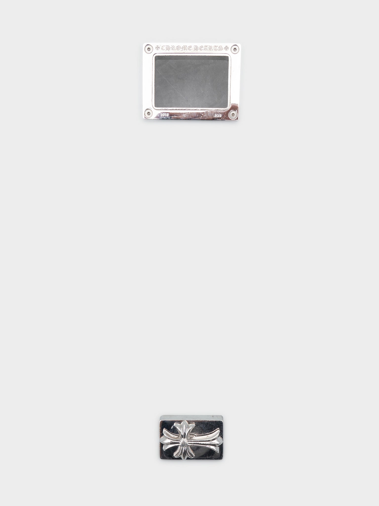 A beautiful white leather Chrome Hearts purse with sterling silver hardware and detachable shoulder strap so it can be worn multiple ways. The strap also has a sterling silver clasp.