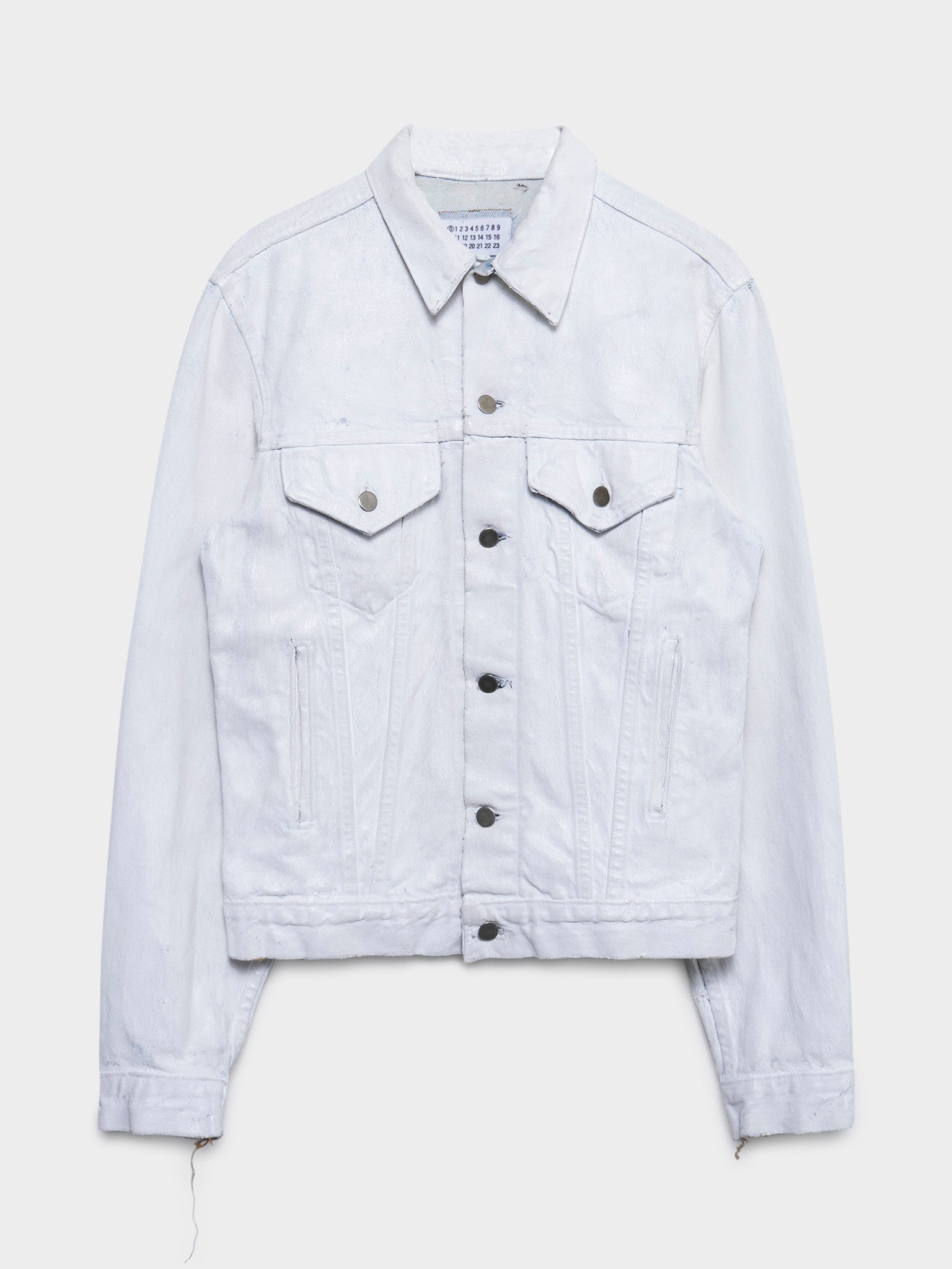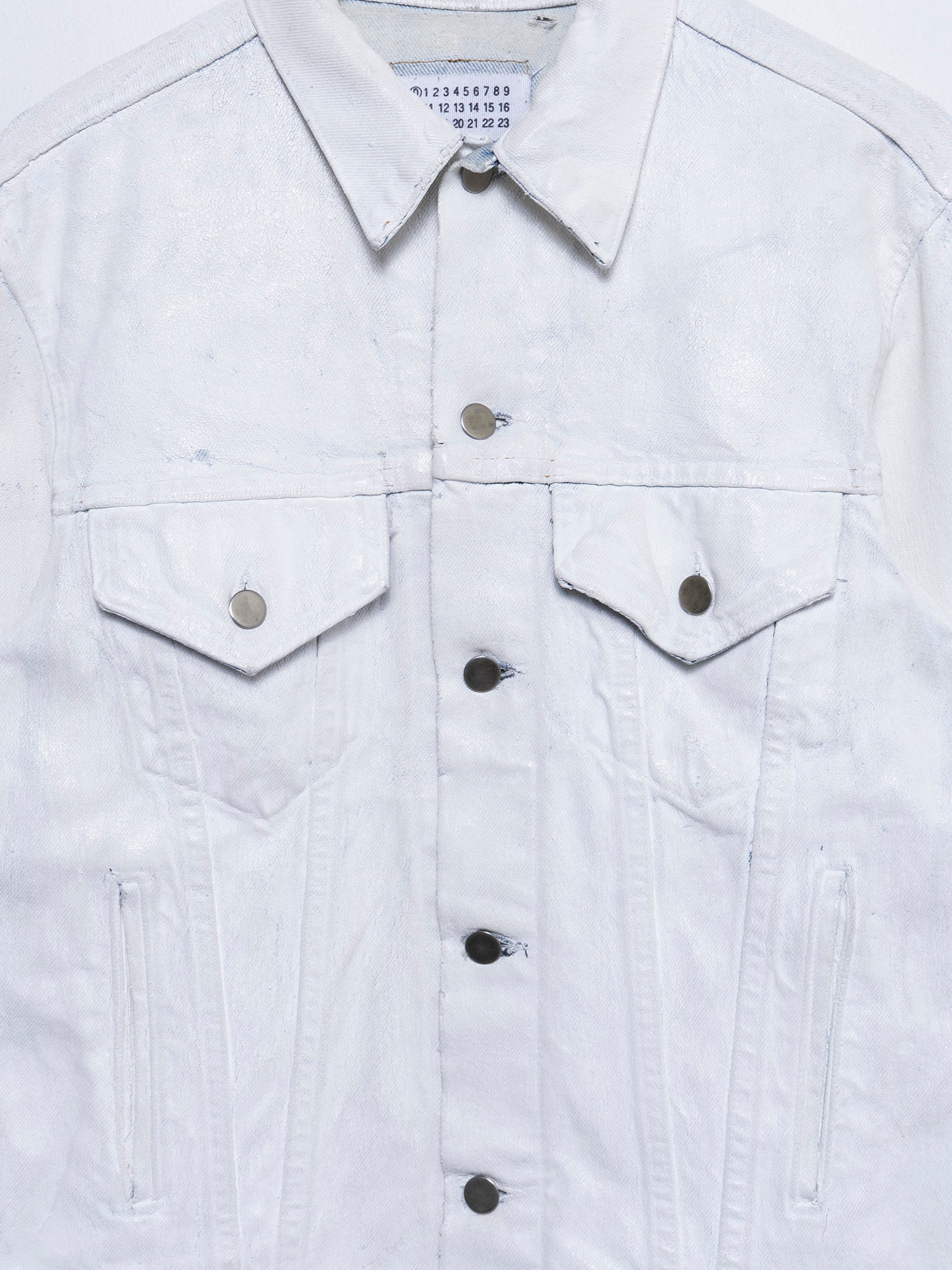 A stunning denim jacket from Margiela's Artisanal line that is covered in white paint that will crack with wear making each jacket unique
