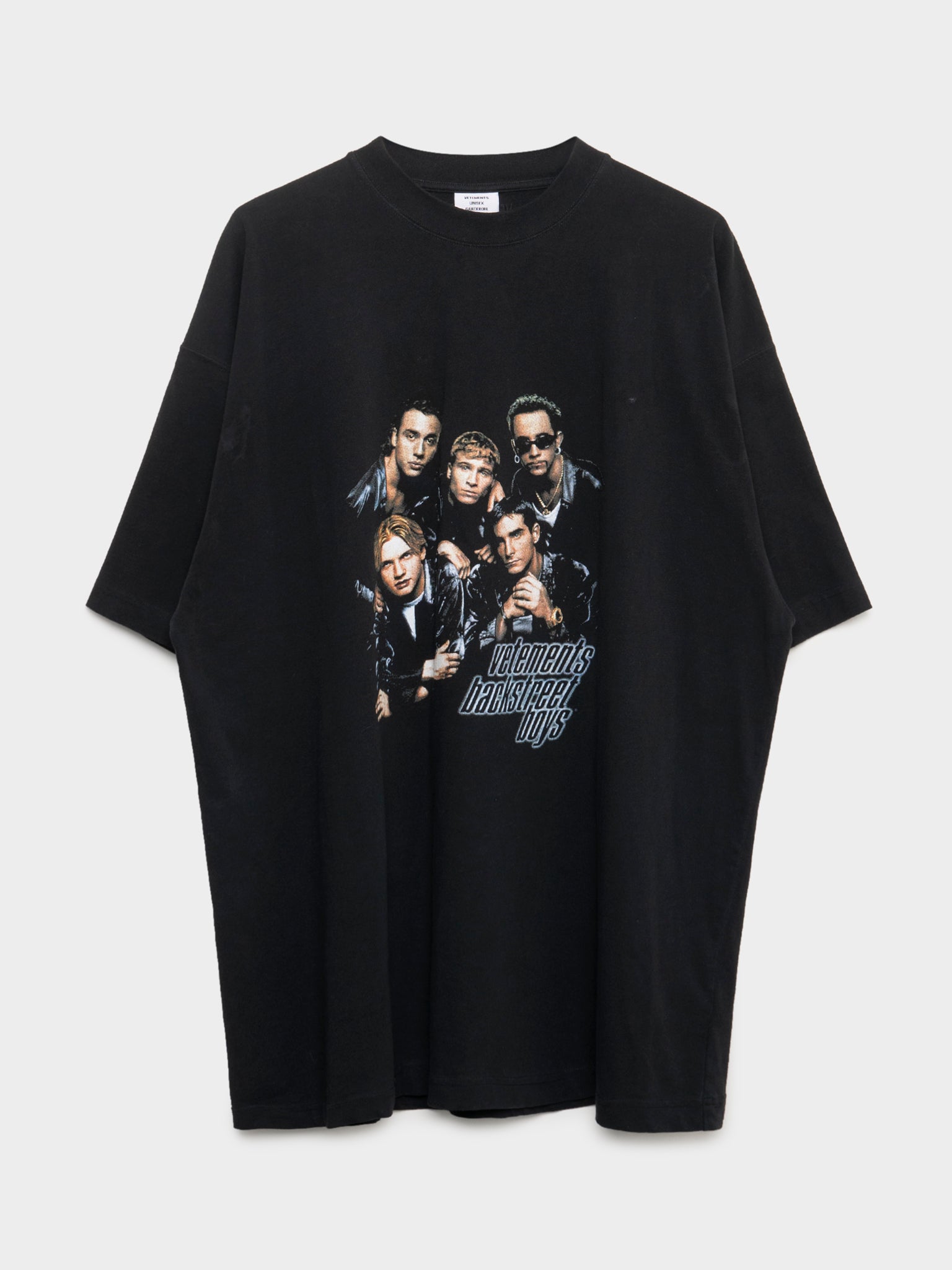 A black Balenciaga tee that features a photo of the heartthrob boy band group Backstreet Boys. Guram really shameless for how hard he's biting Demna's Balenciaga. But I guess all imitation is flattery?