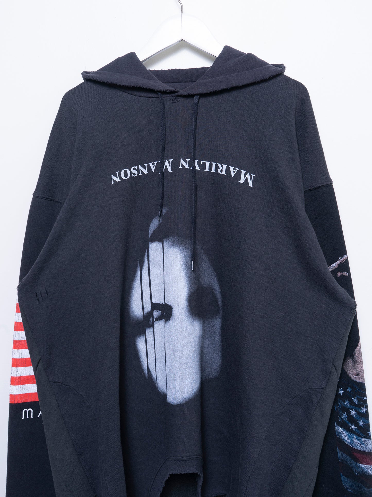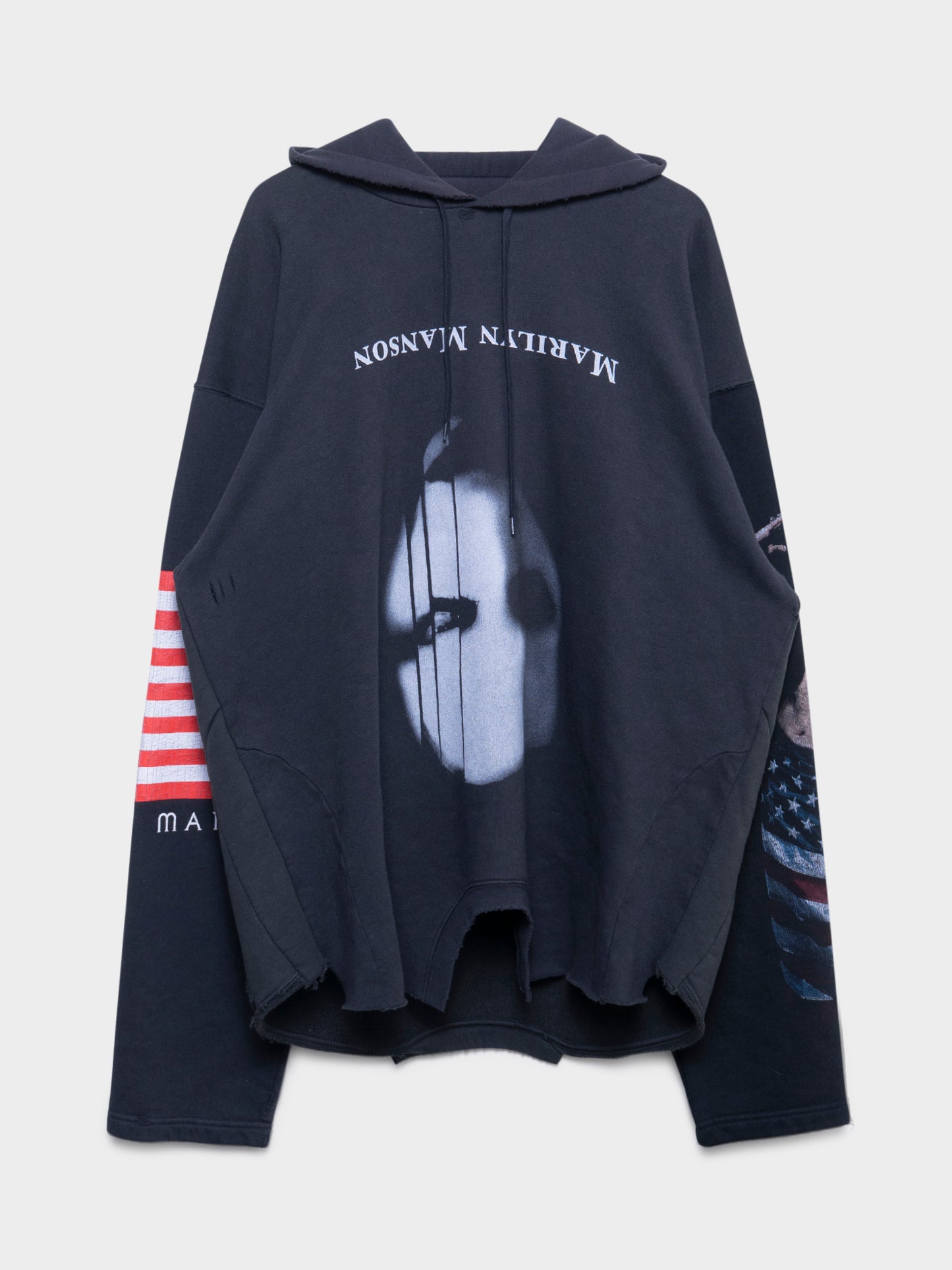 From the banned and removed "collaboration" between Balenciaga and Marilyn Manson comes this extremely rare reconstructed hoodie featuring the imagery/album art of the infamous rockstar
