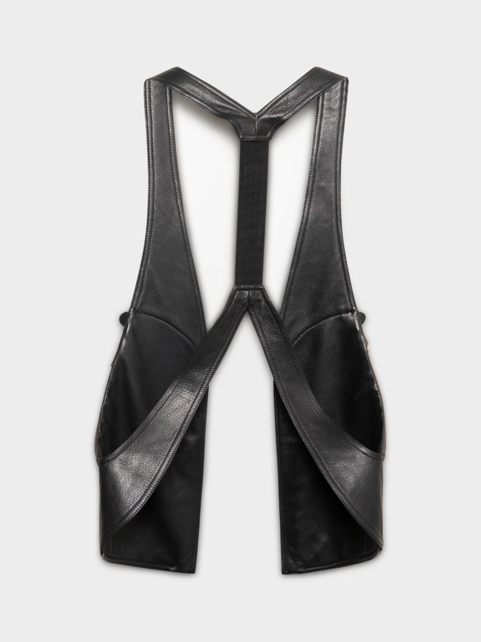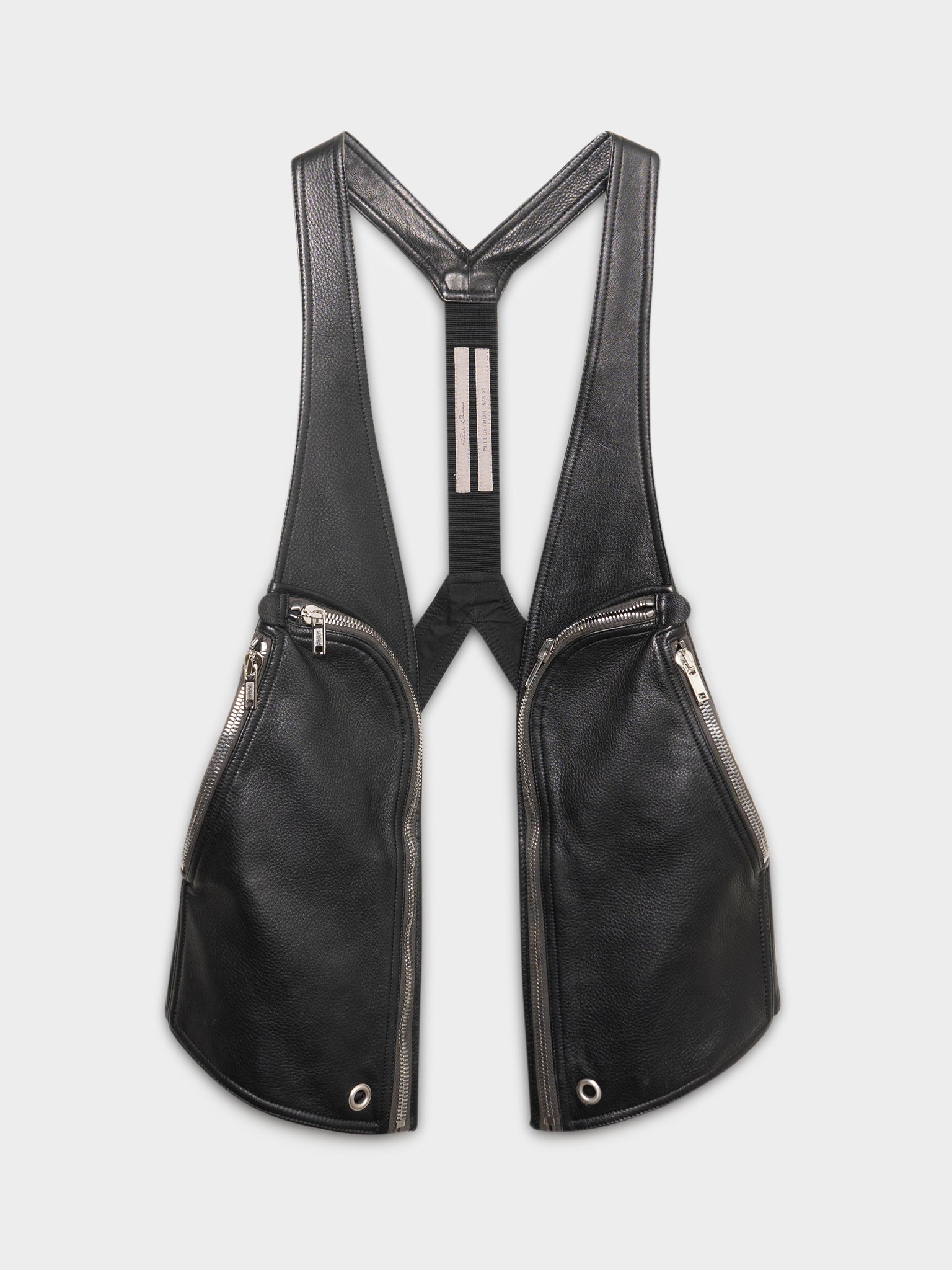 A Rick Owens Bauhaus leather holster vest with two zip chest pockets