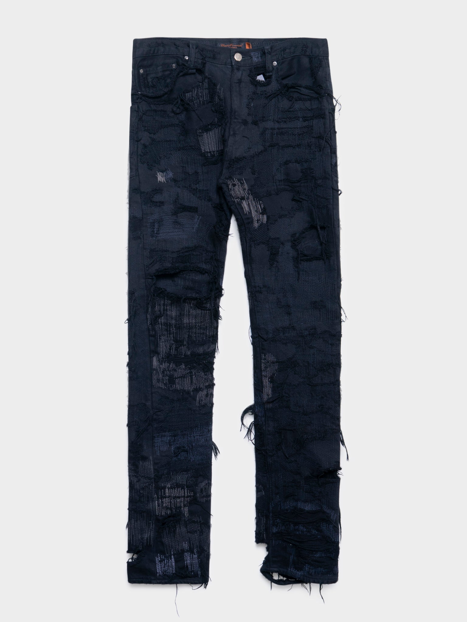 Probably the most legendary pair of jeans in the Japanese archive fashion history, the Undercover 85 jeans in the rare all black version. Completely crafted together from patches and scraps of black repaired denim, it really is master craftsmanship.
