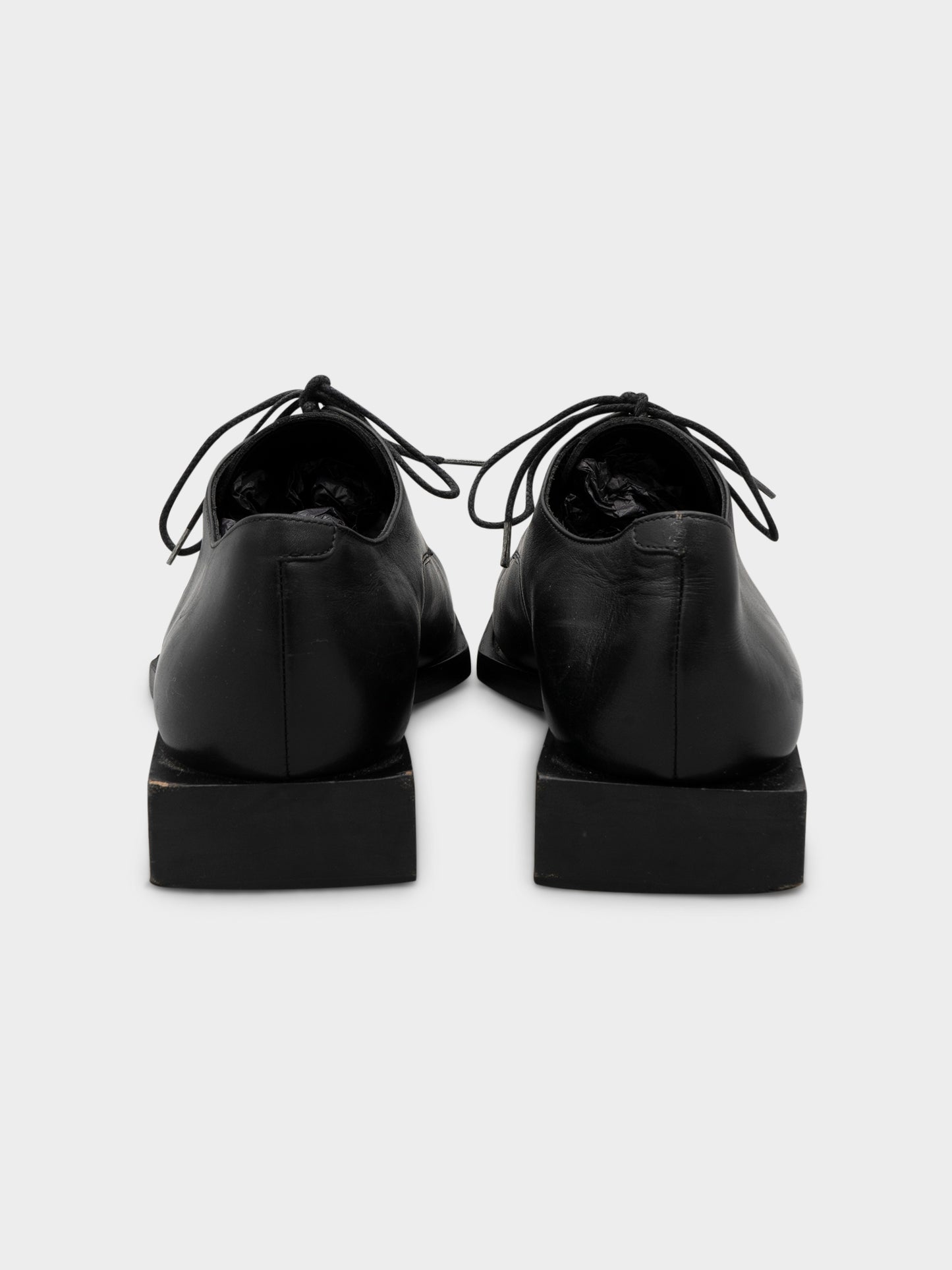 A pair of Balenciaga Bloc Rim derbies with an exaggerated toe box shape to give a really cool twist on classic dress shoes.