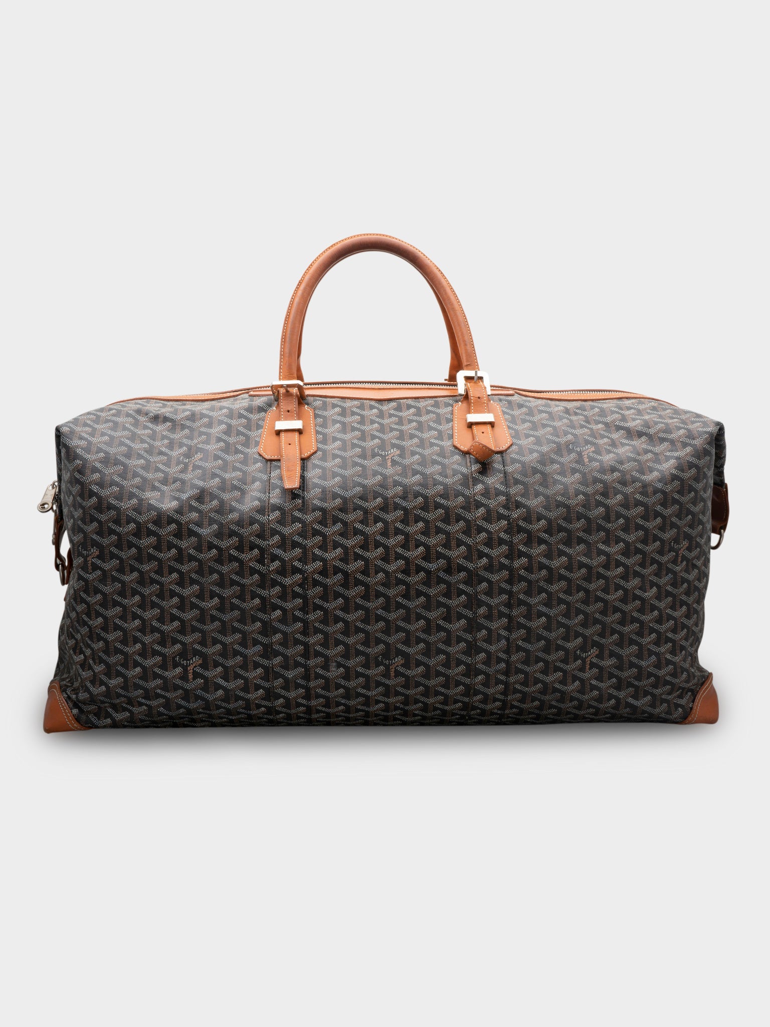 A black Goyard Boeing 50 duffle bag with beautiful brown leather trim, the perfect size travel bag for any length