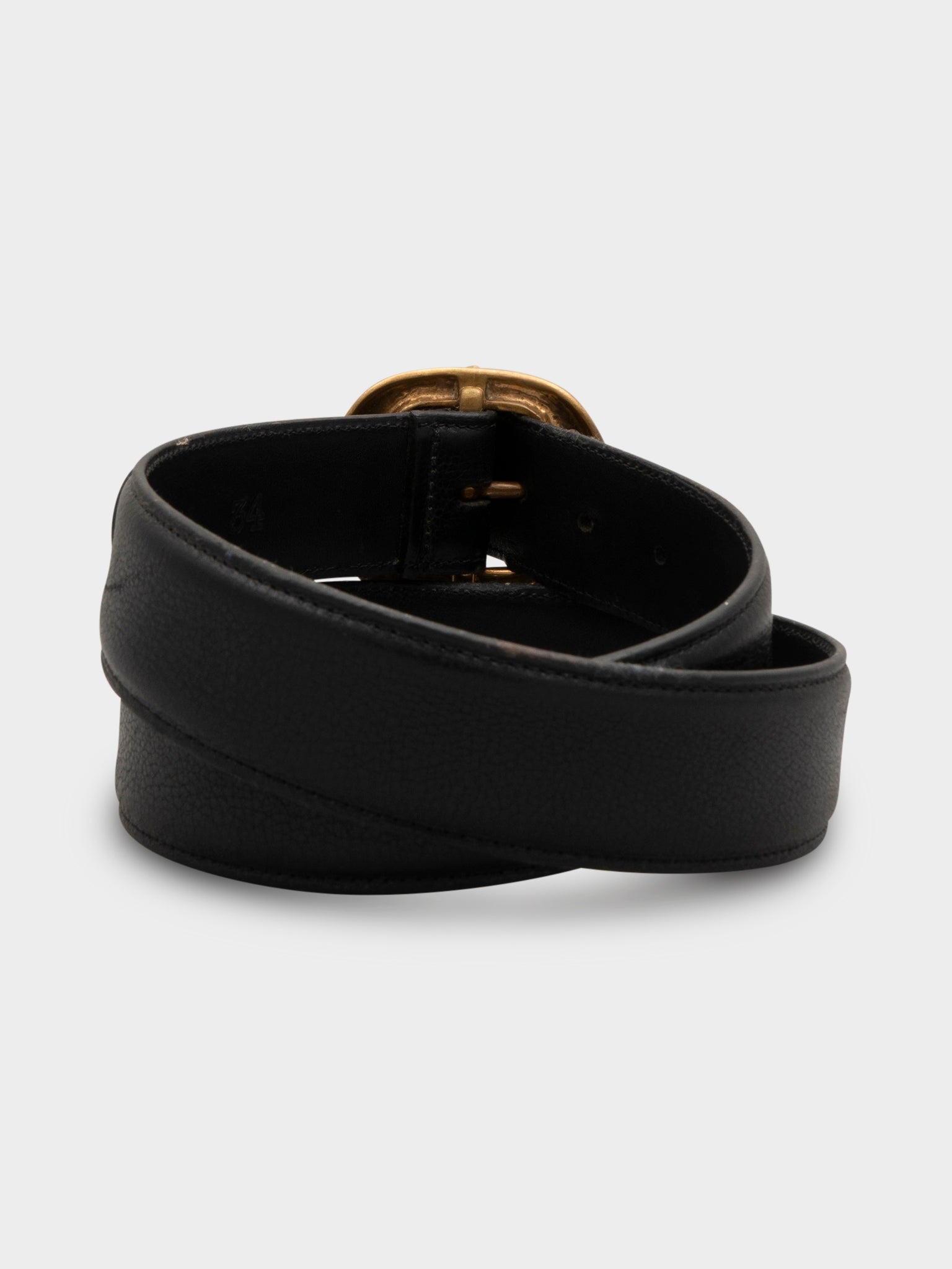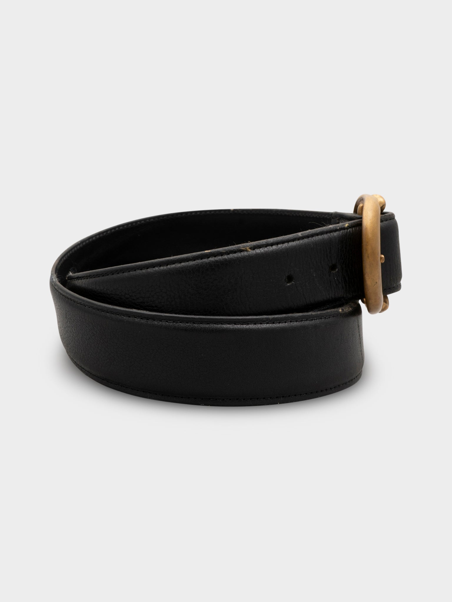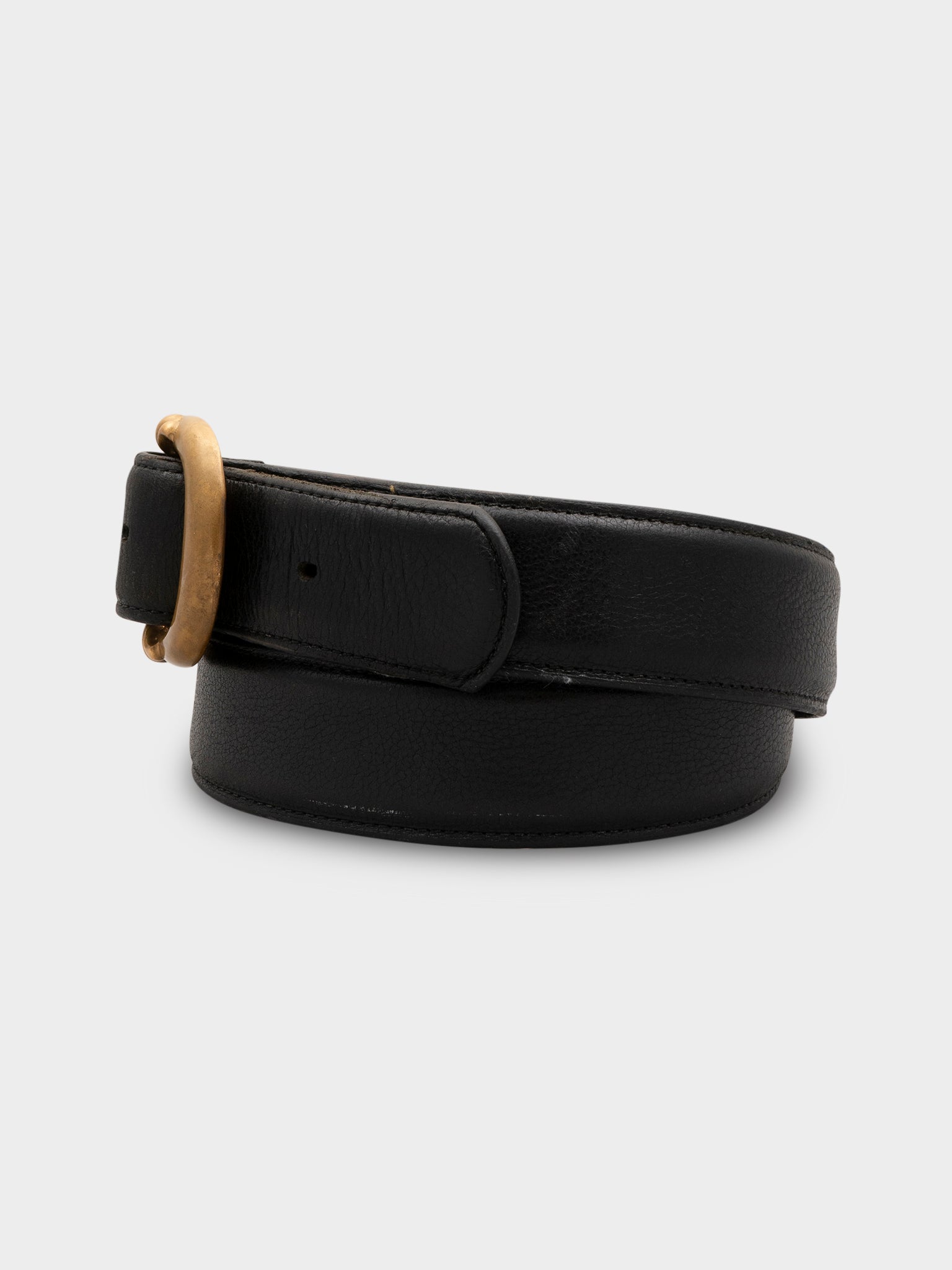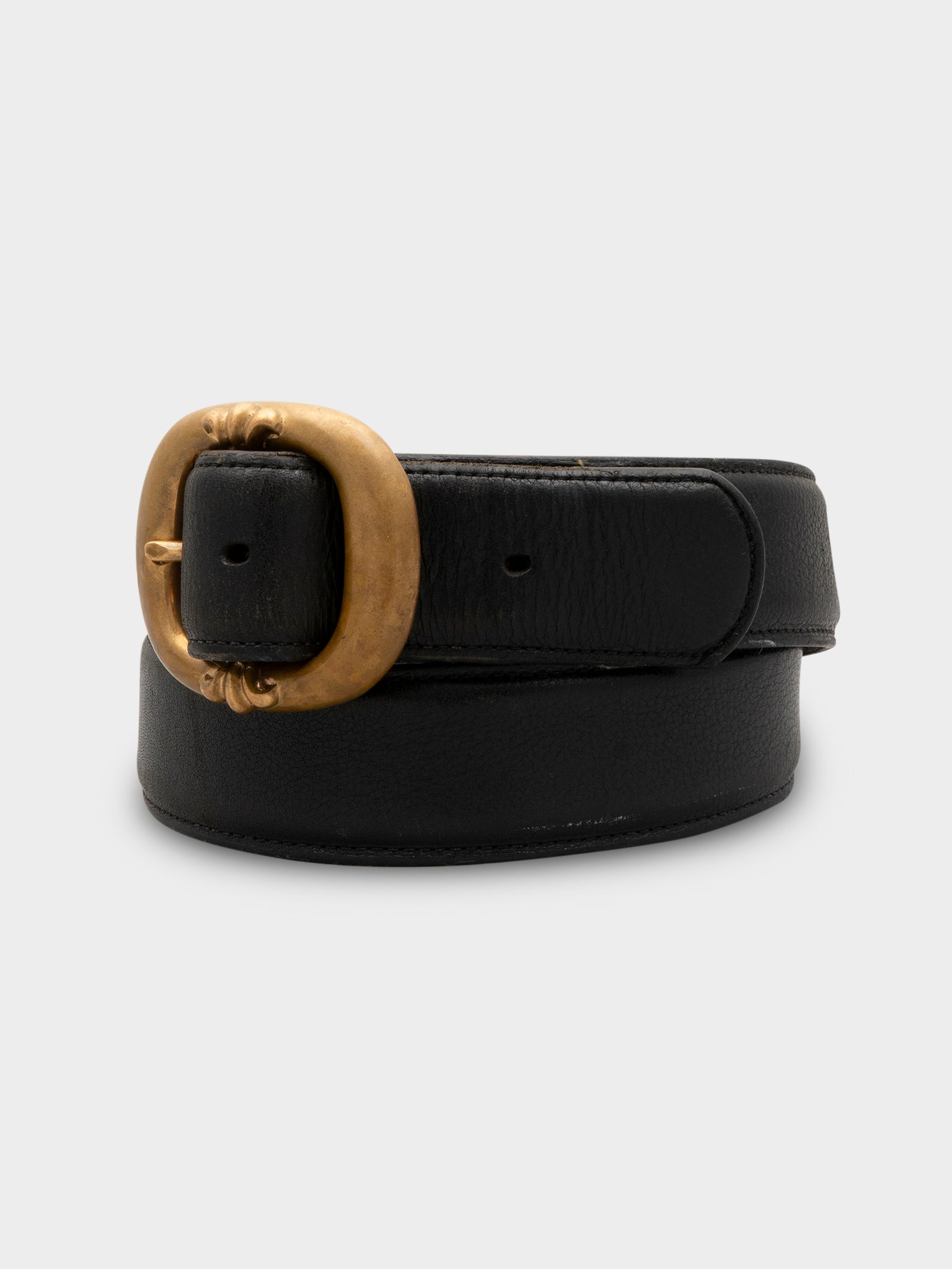 A Chrome Hearts leather belt with bronze gunslinger belt buckle.