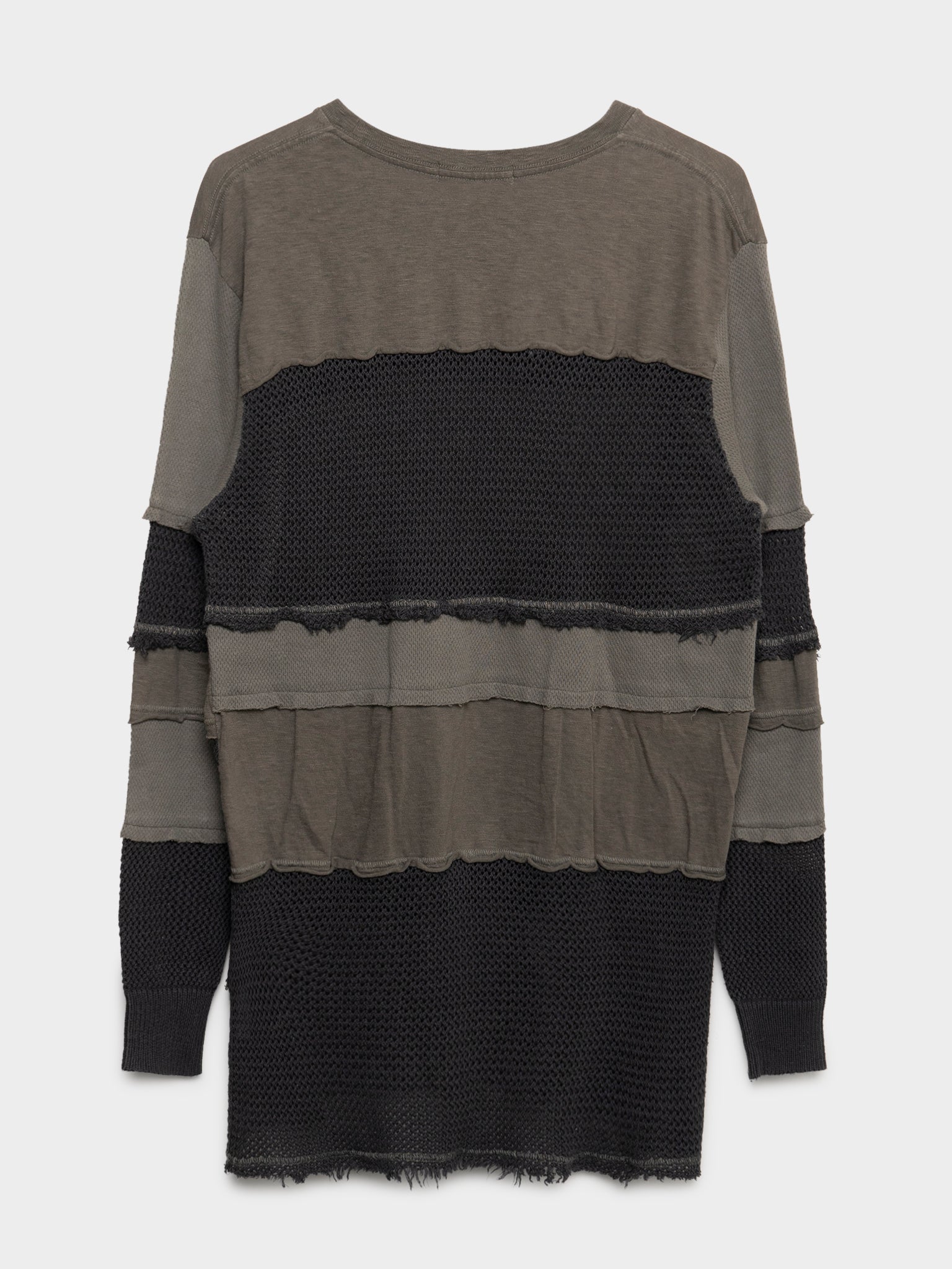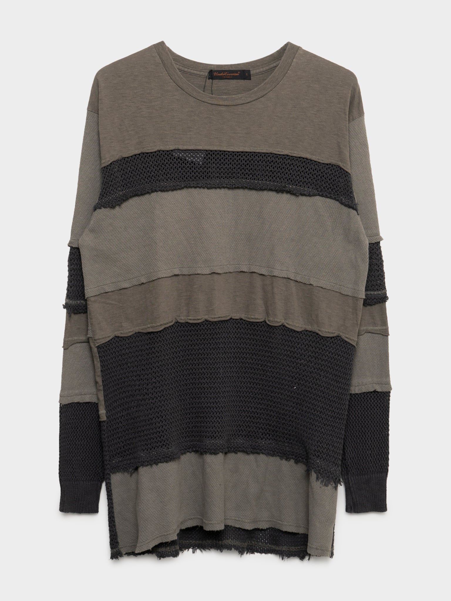 From Undercover's FW04 collection 'But Beautiful' comes this brown longsleeve tee crafted from multiple different fabric types + colors.