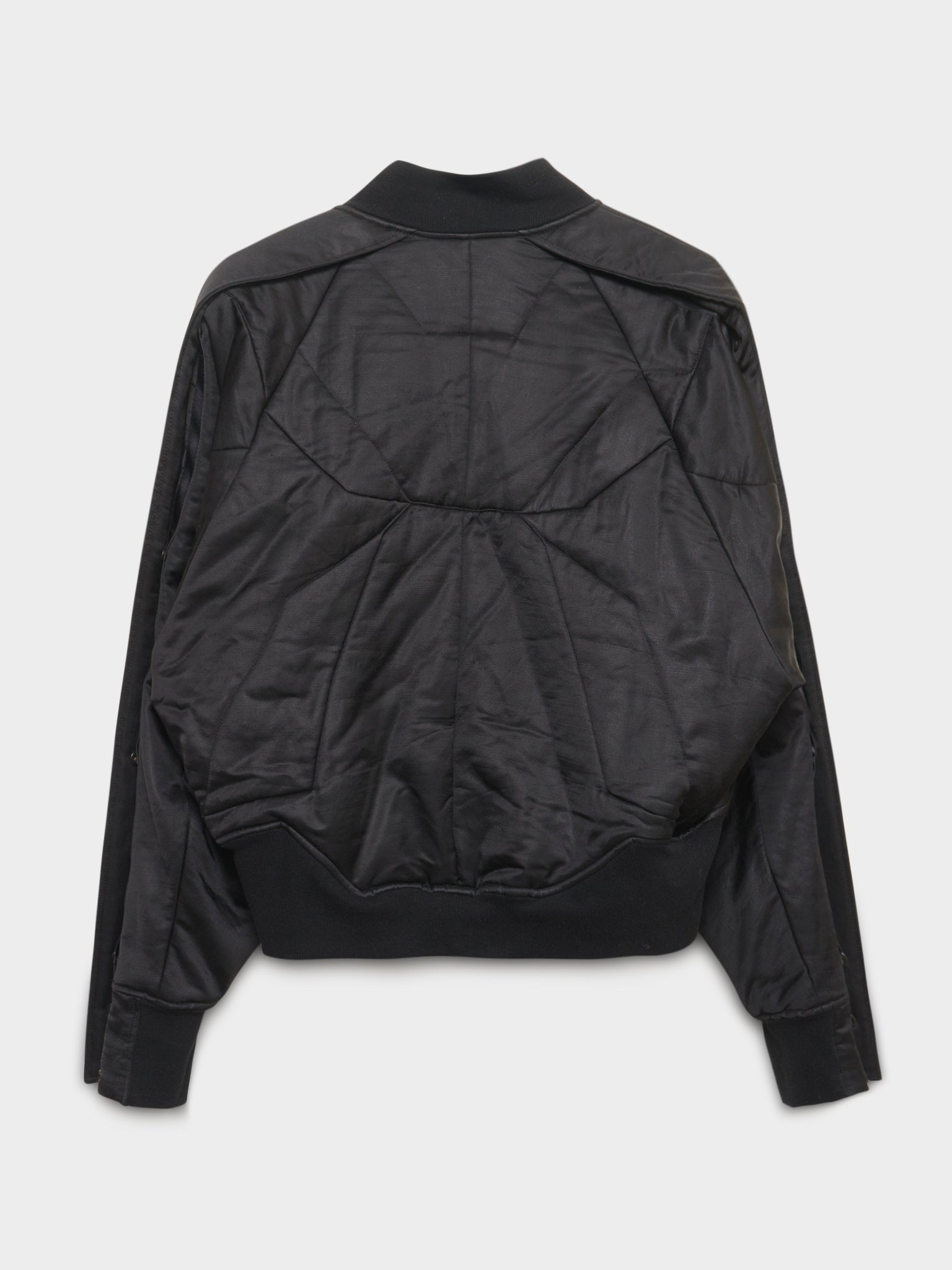 A black padded bomber from Julius with paneling designs throughout.