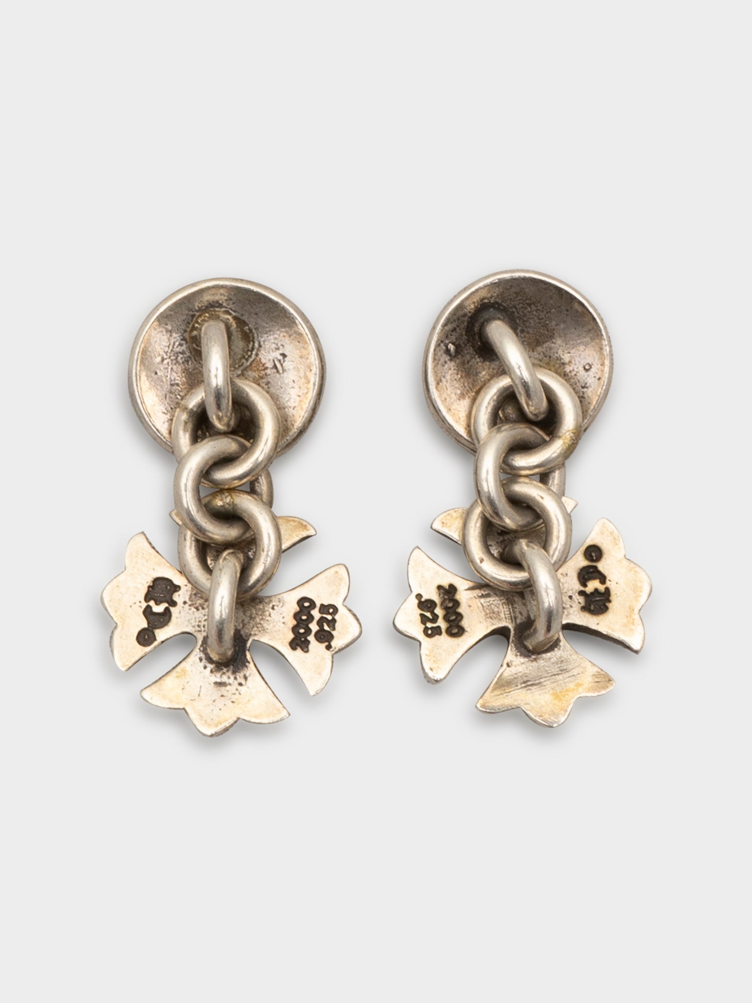 A set of sterling silver Chrome Hearts cufflinks with their classic cut out plus design with horseshoe studs.