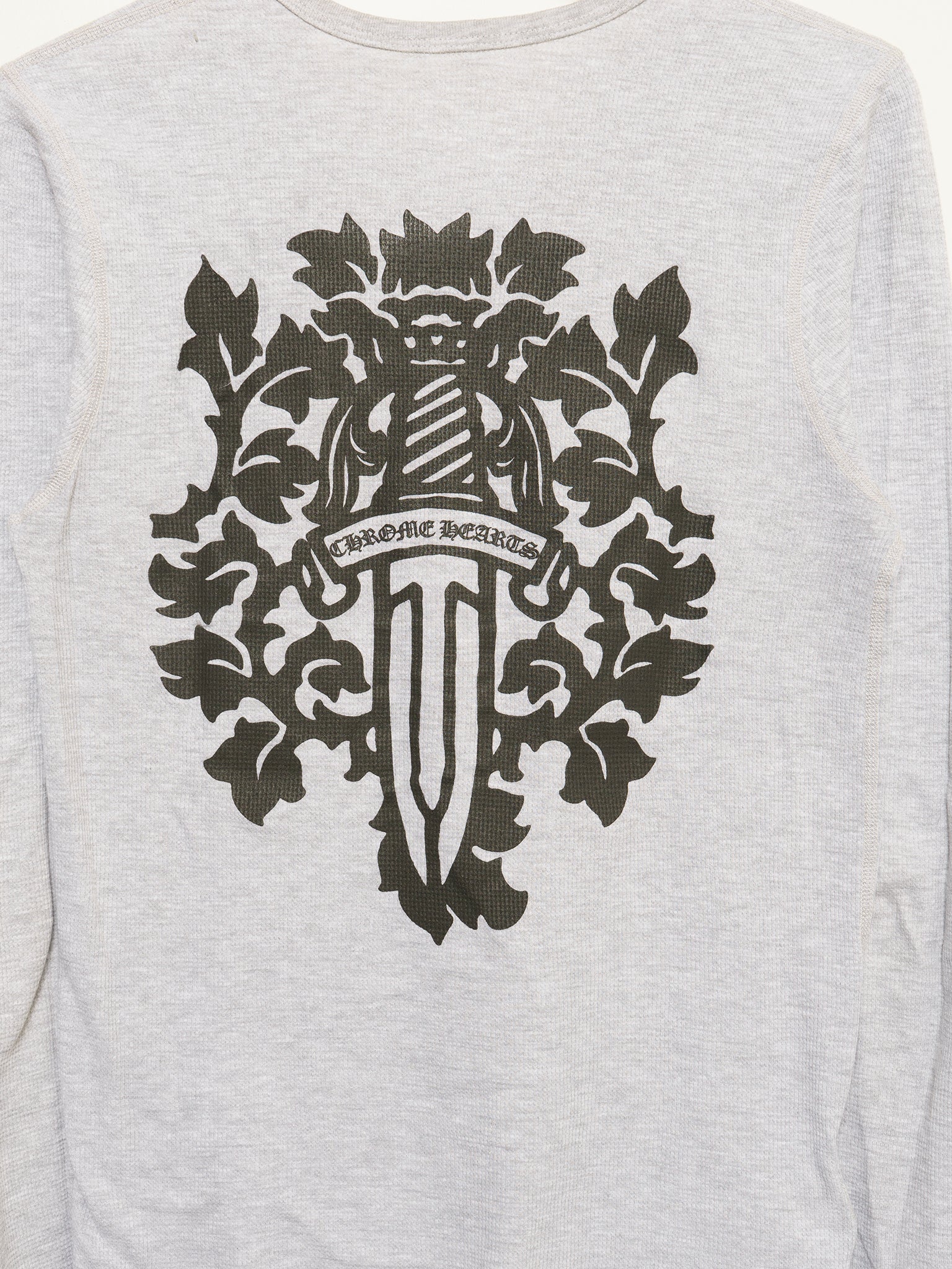 A grey thermal Chrome Hearts longsleeve shirt with dagger motif on front and back
