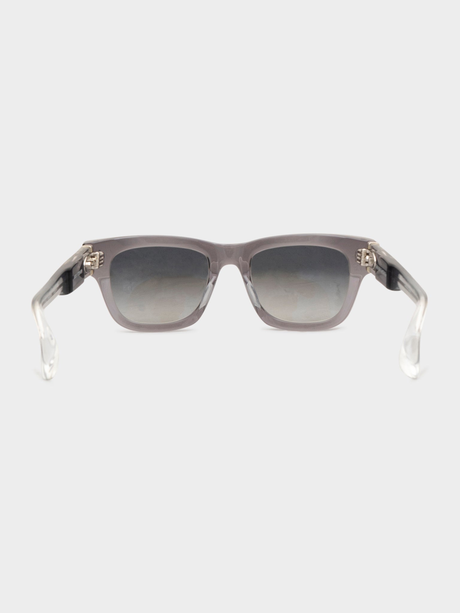 A pair of heavy grey acetate Chrome Hearts Dick Fitzener sunglasses with sterling silver detailing around the temples