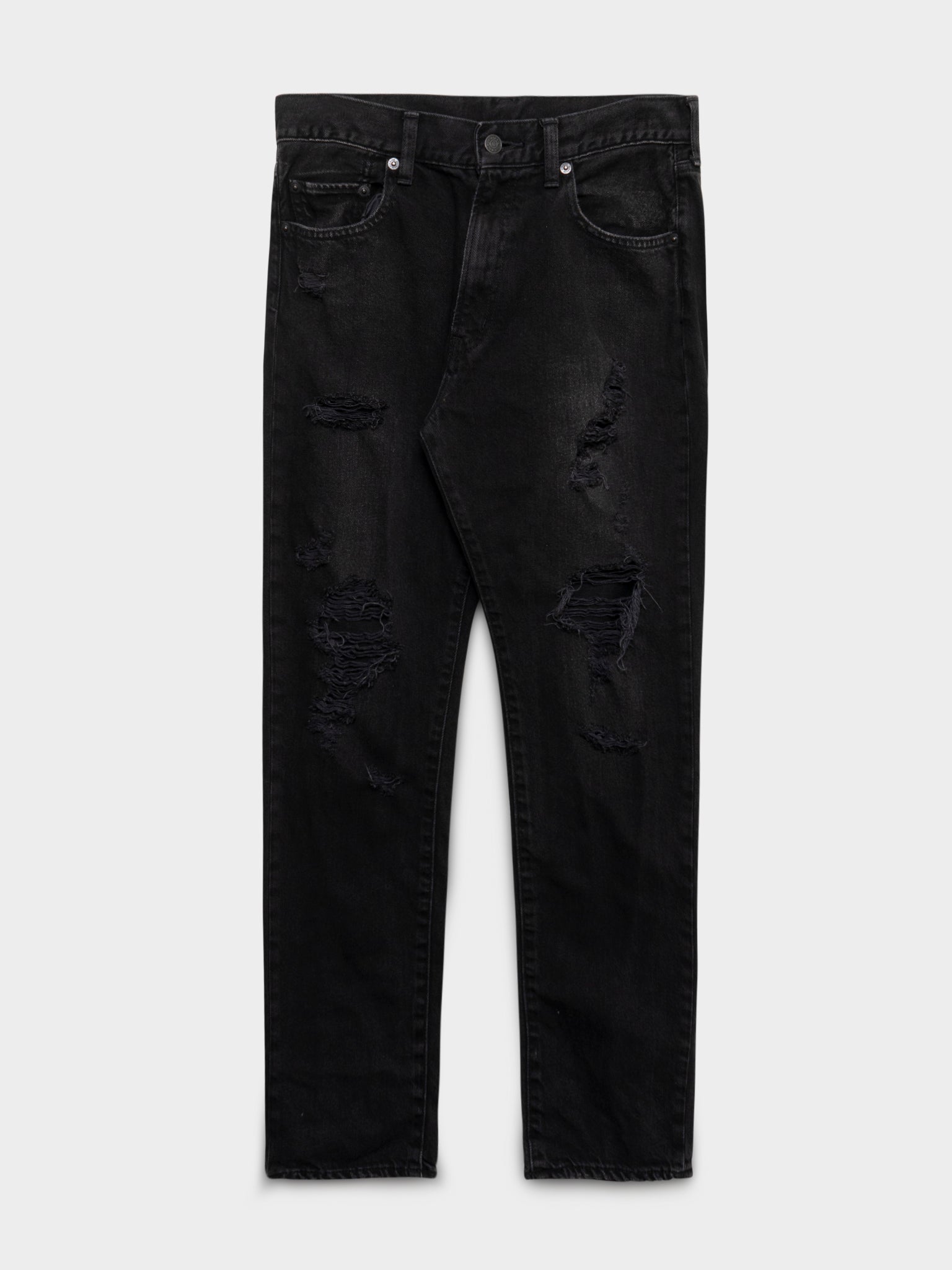 A pair of straight legged Hysteric Glamour jeans with distressing throughout