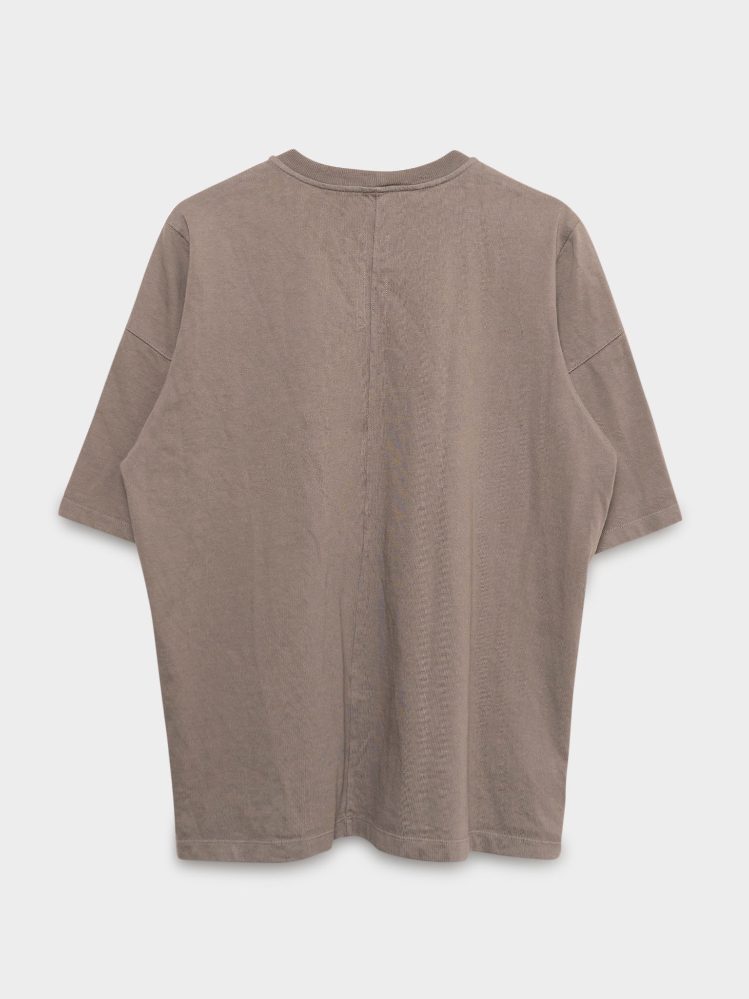 A dust colored Rick Owens heavyweight jumbo tee.