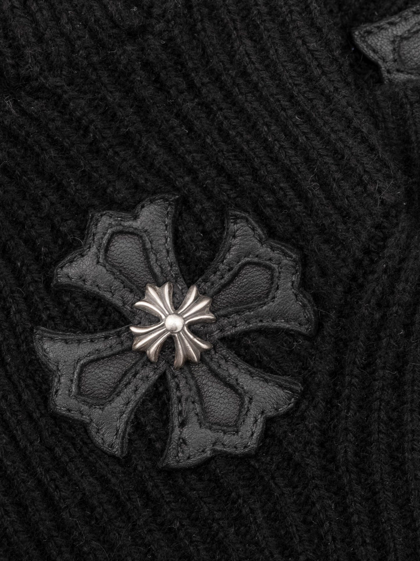 A pair of Chrome Hearts cashmere fingerless gloves with leather patches and sterling silver hardware