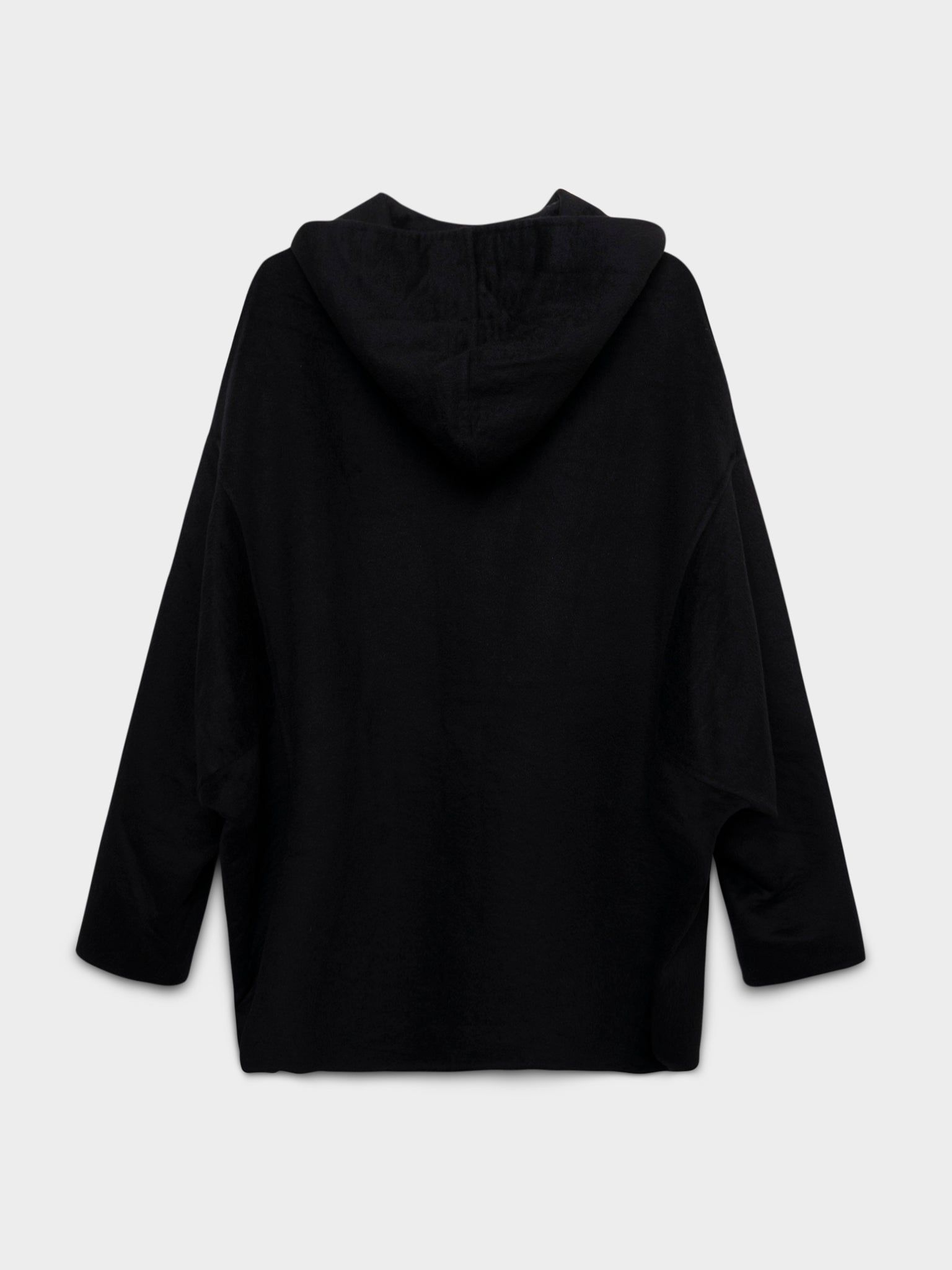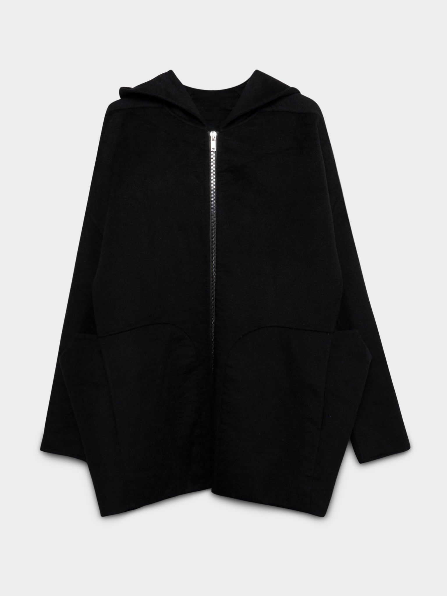 From Rick Owens' FW21 collection 'Gethsemane' comes this oversized black 100% cashmere zip up jacket with extreme drop shoulders