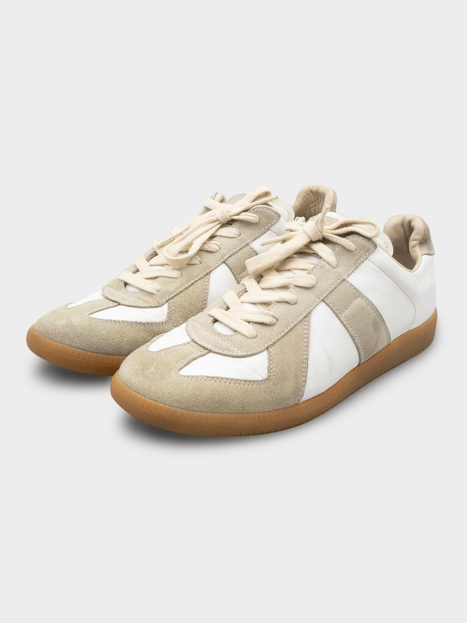 A pair of tan Maison Margiela GAT replica sneakers, the actual perfect daily wear.