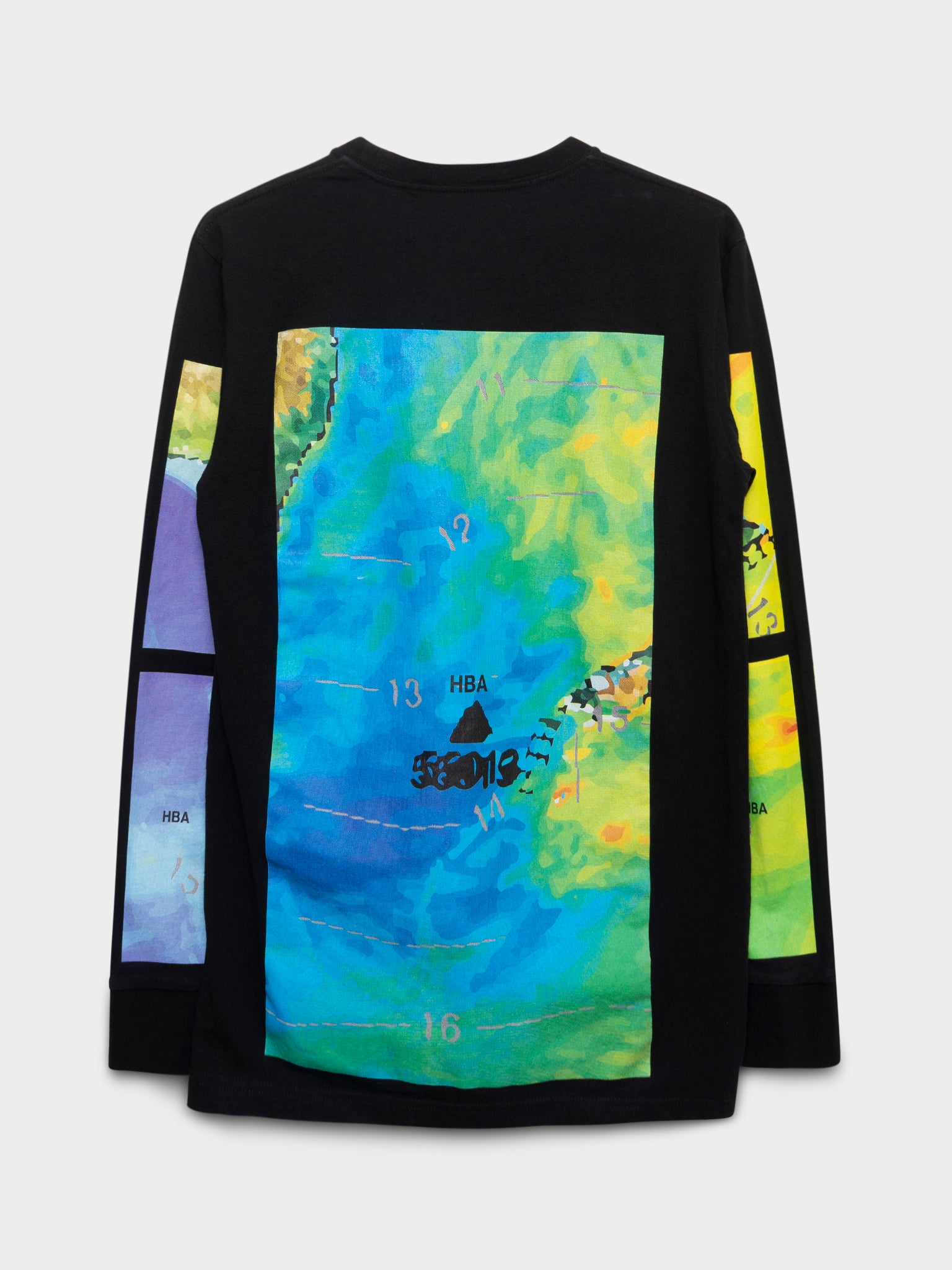 A black longsleeve tee from Hood by Air with a graphic of a weather map predicting a massive heatwave.