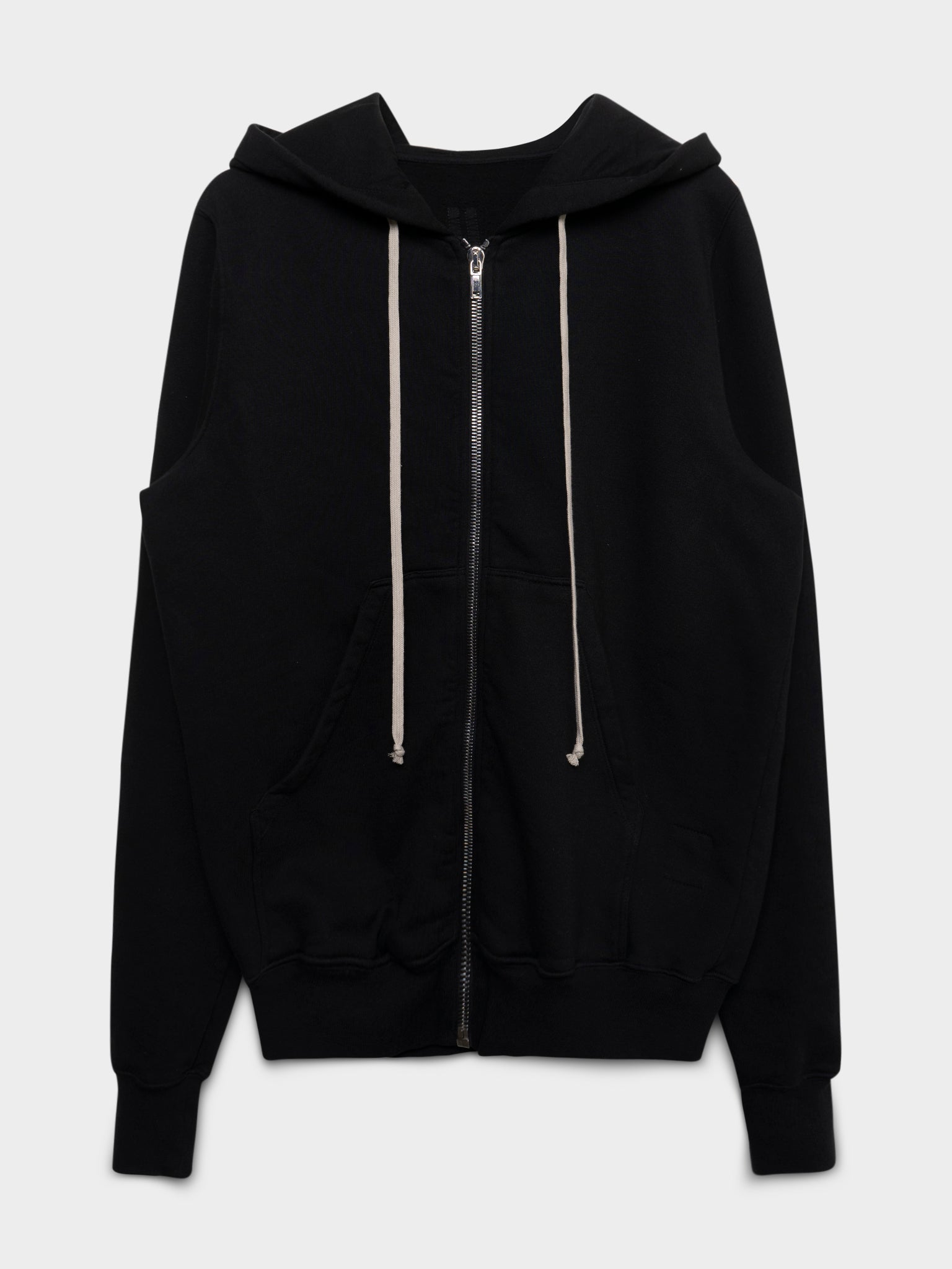 A classic black Rick Owens zip up Jason hoodie.