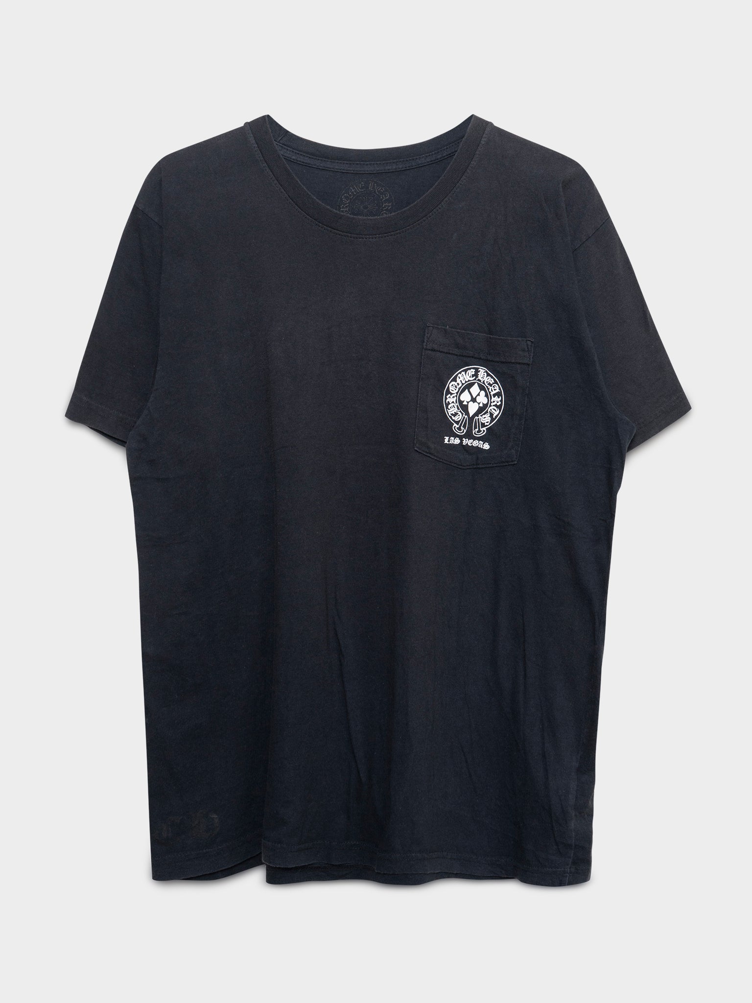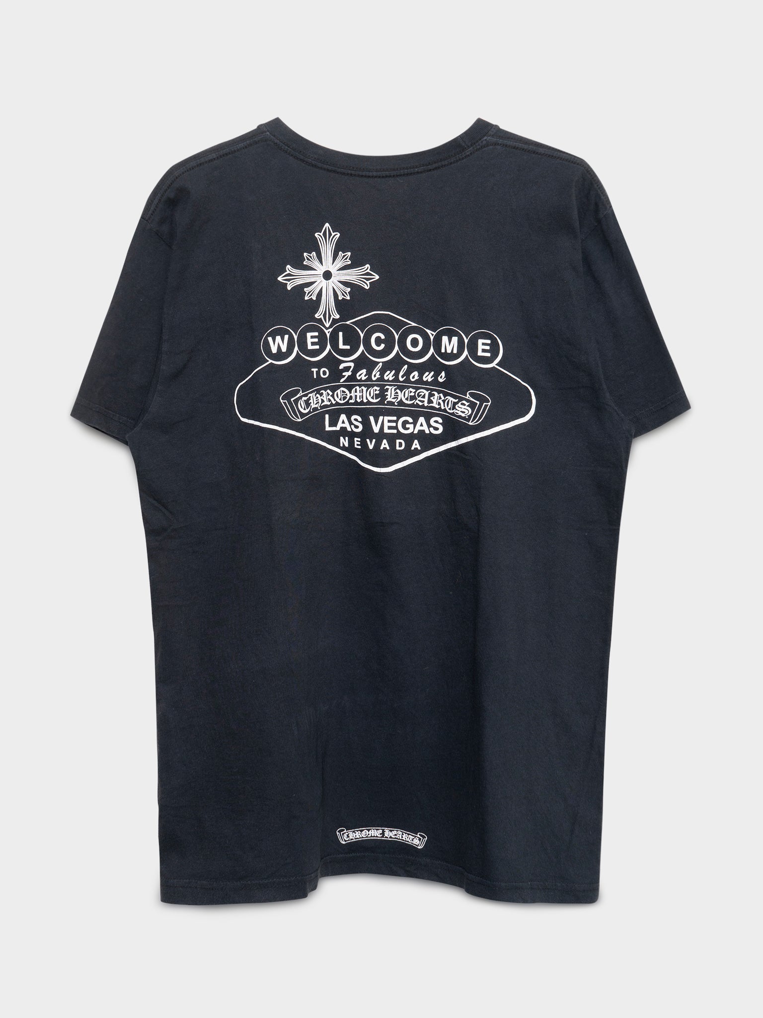 A black Chrome Hearts tee with the 'Welcome to Las Vegas' sign on the back