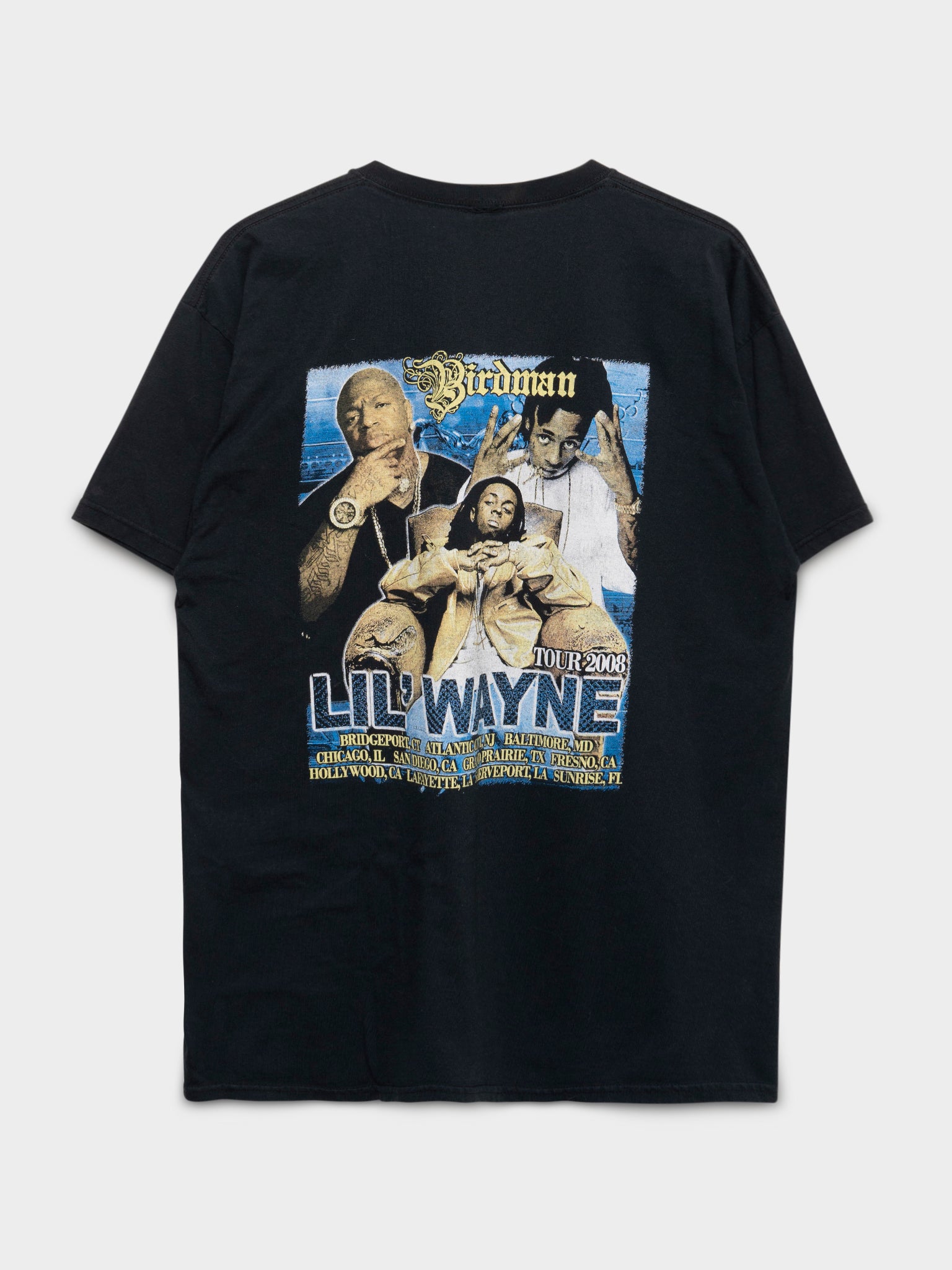 A vintage '08 Lil Wayne and Birdman tour tee, real sick front and back graphic from golden age