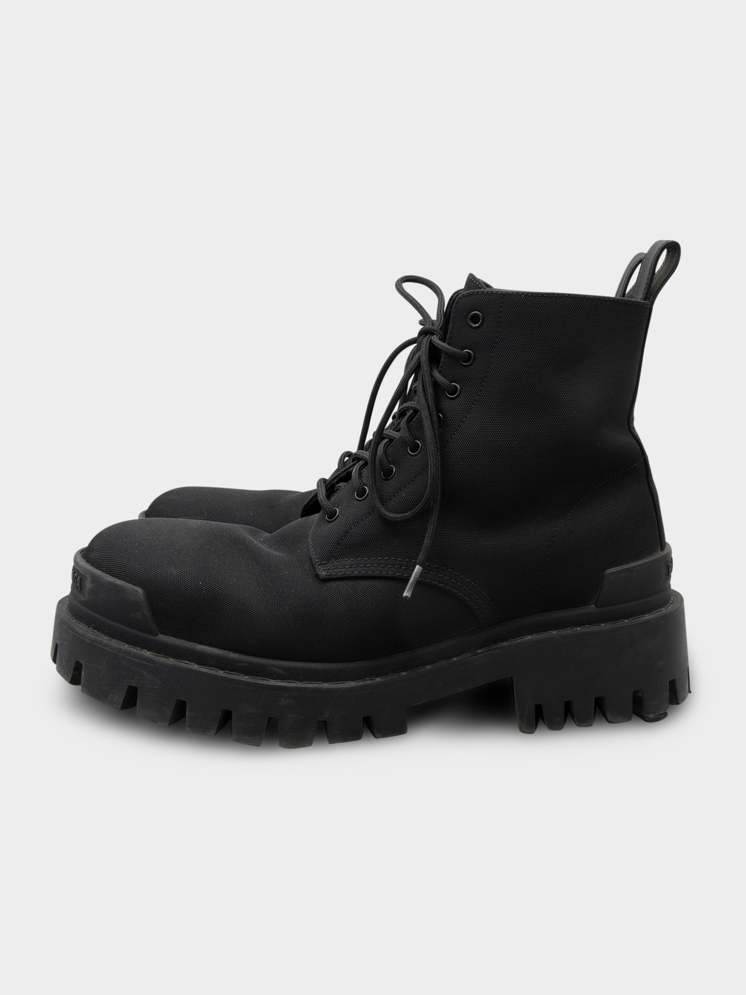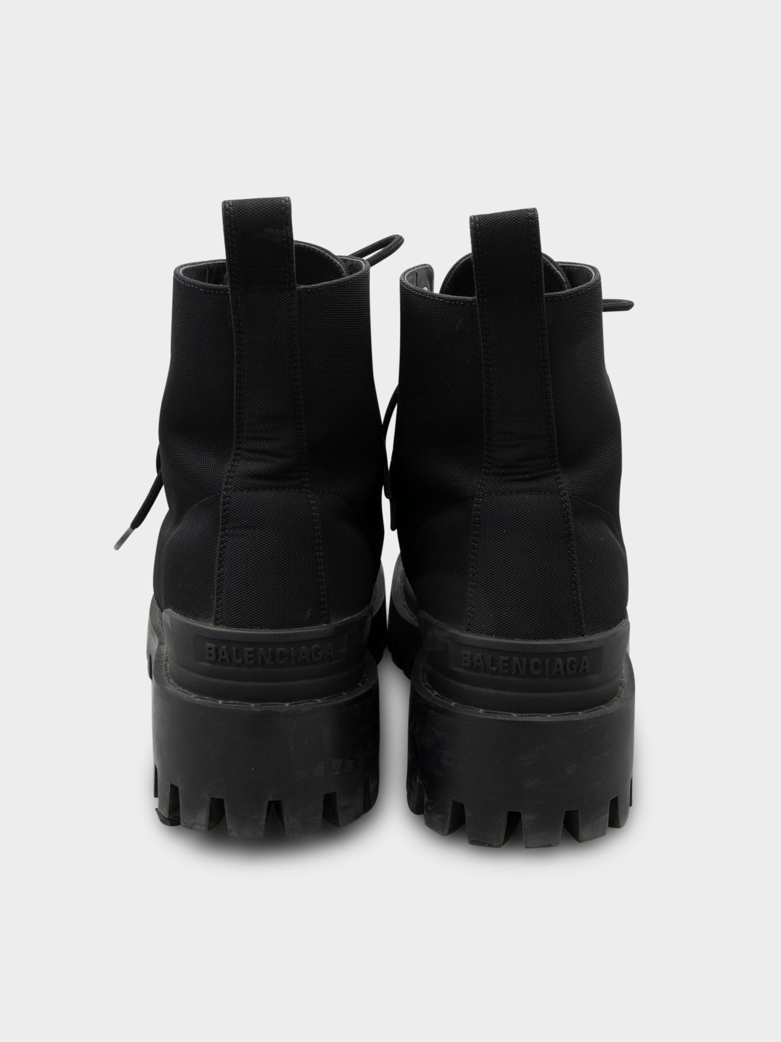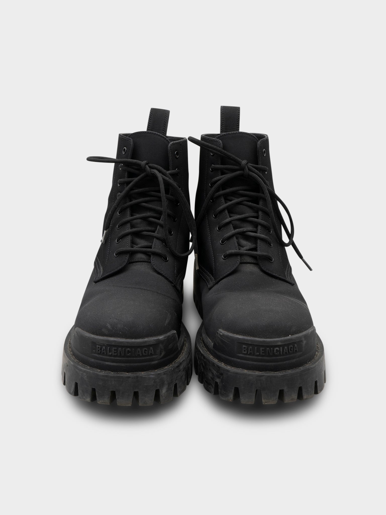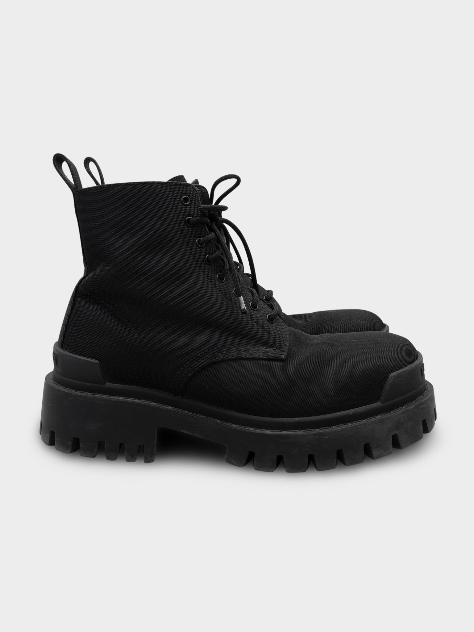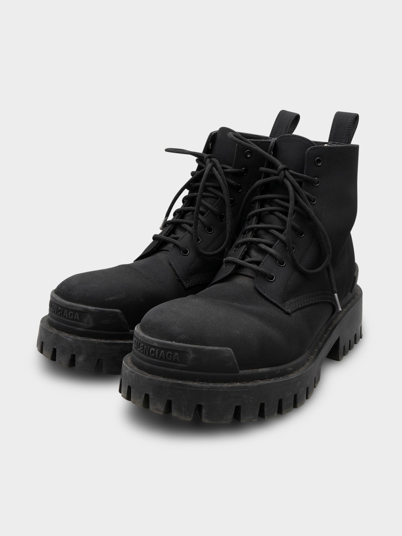 A pair of black heavy duty nylon Balenciaga Strike Boots
