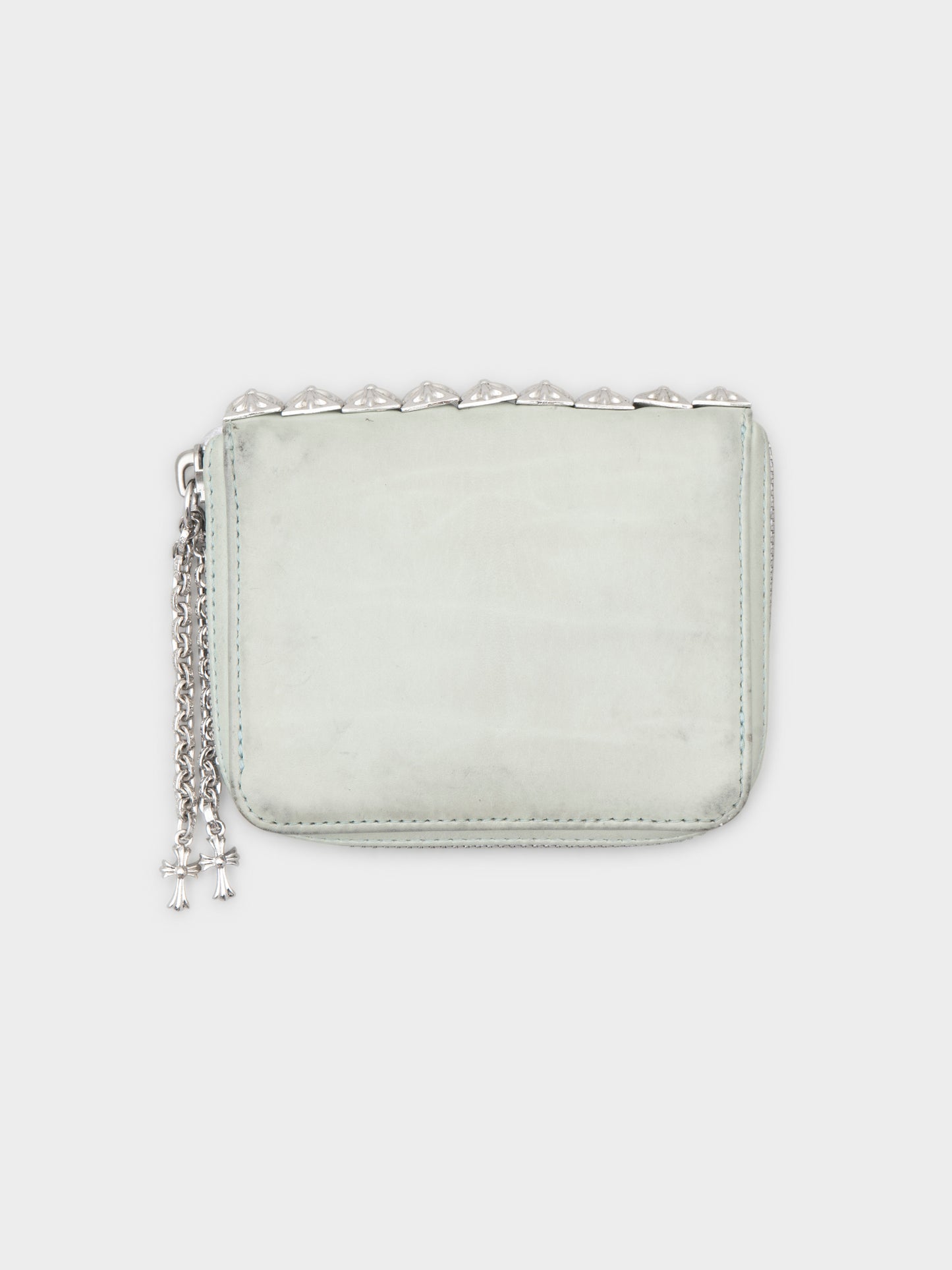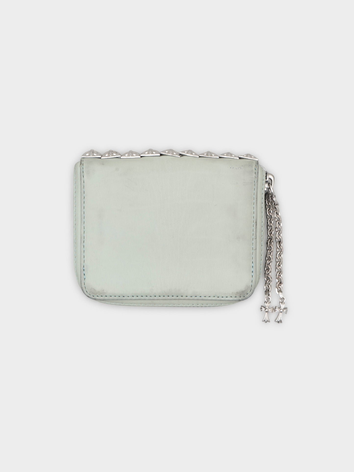 Beautiful leather wallet in the babies of blues with sterling silver hardware, coated in Chrome Heart's signature rhodium to give it extra shine even as the wallet ages.