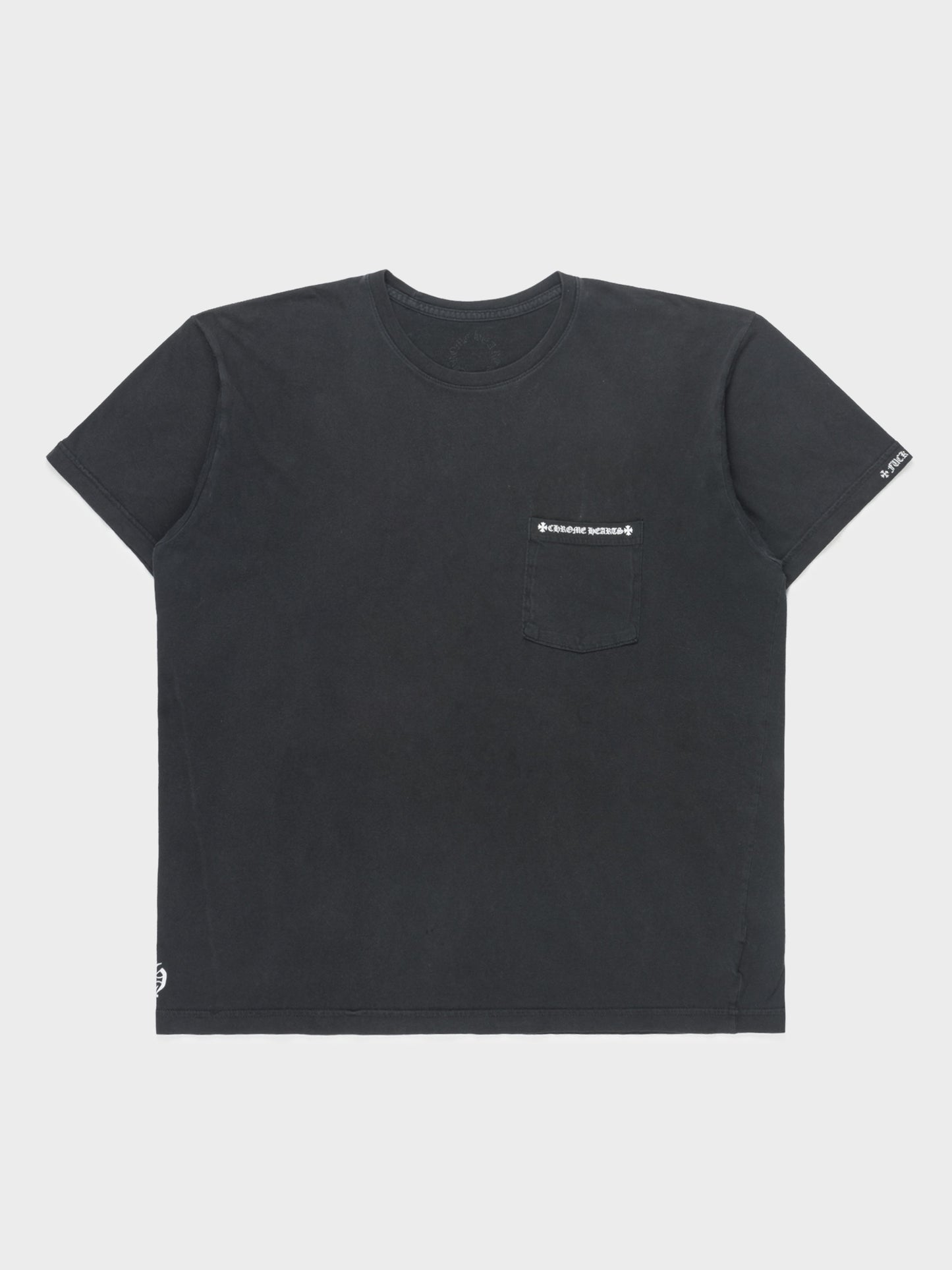 A nicely faded Chrome Hearts pocket t-shirt with logo and script on back