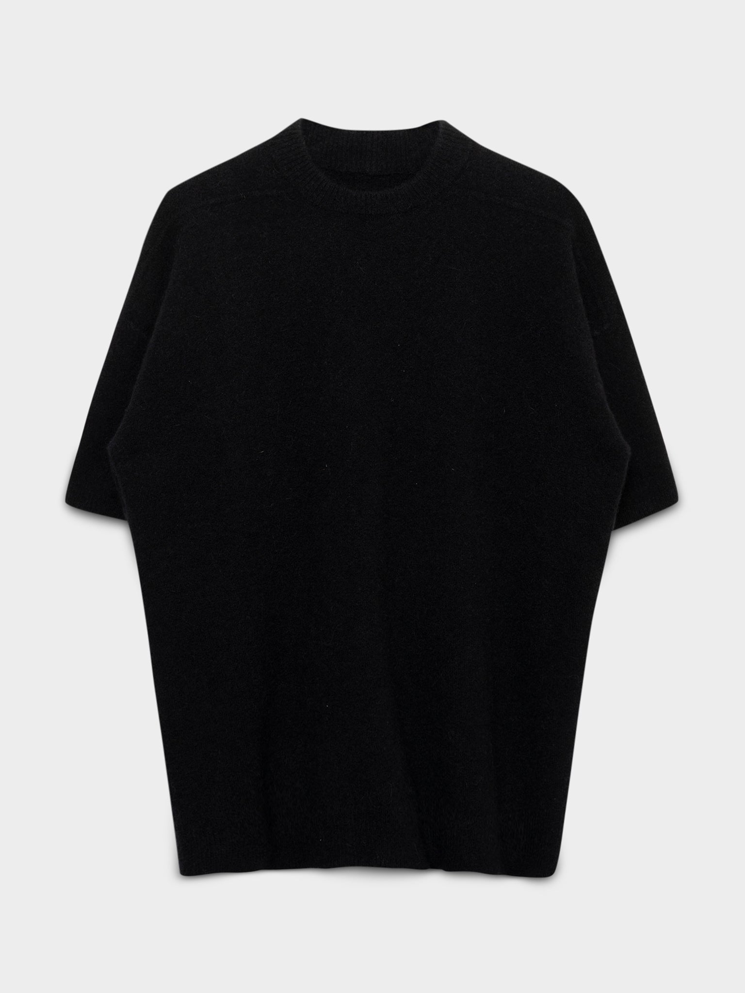 A black knit tee from Rick Owens FW24 collection 'Porterville' made of luscious soft alpaca wool