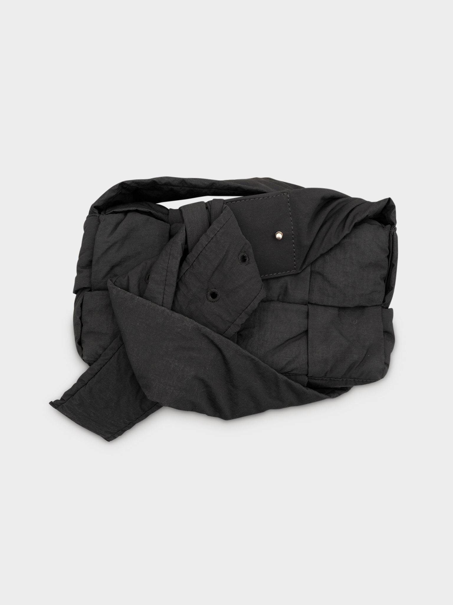 A black puffy Bottega Veneta Cassette bag made of their soft quilted fabric