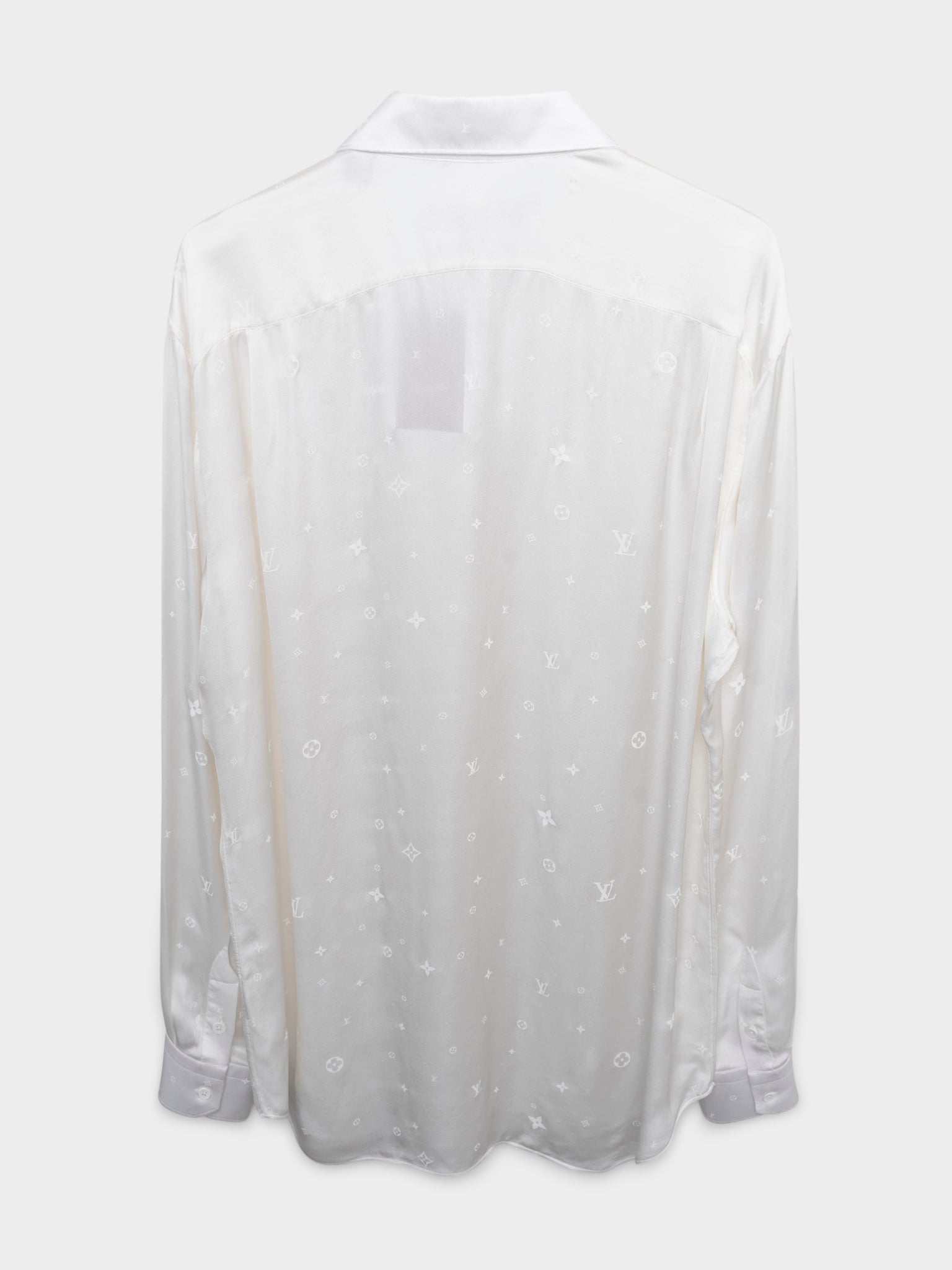 A loose and flowy Louis Vuitton silk button up dress shirt with subtle monogramming throughout