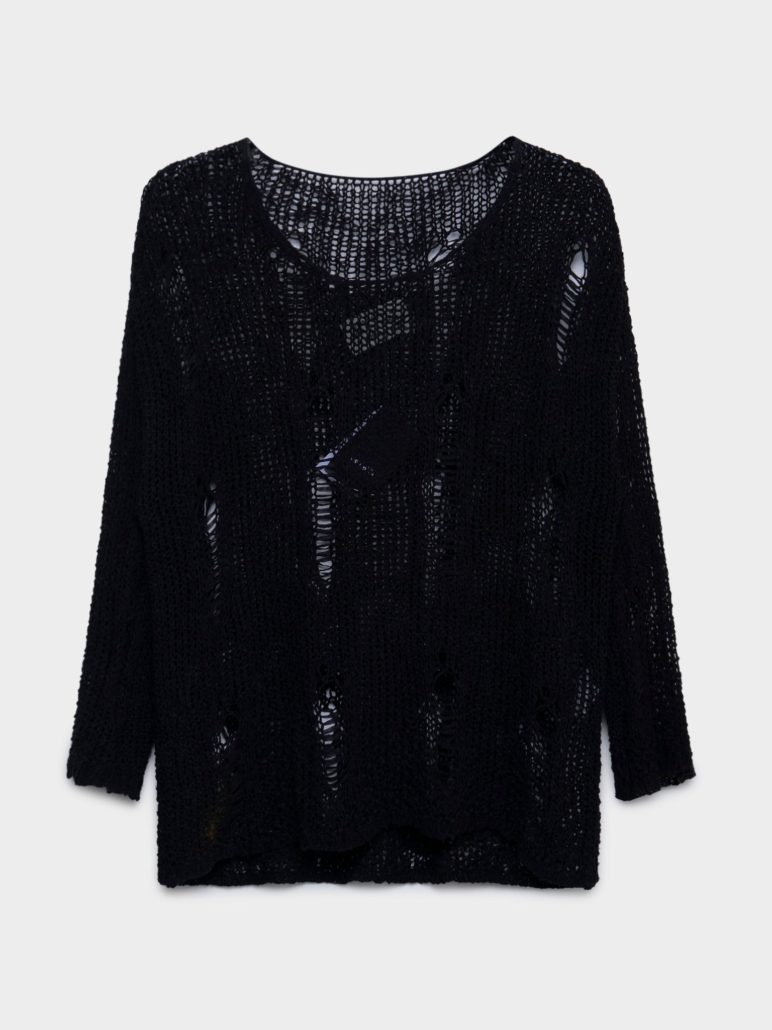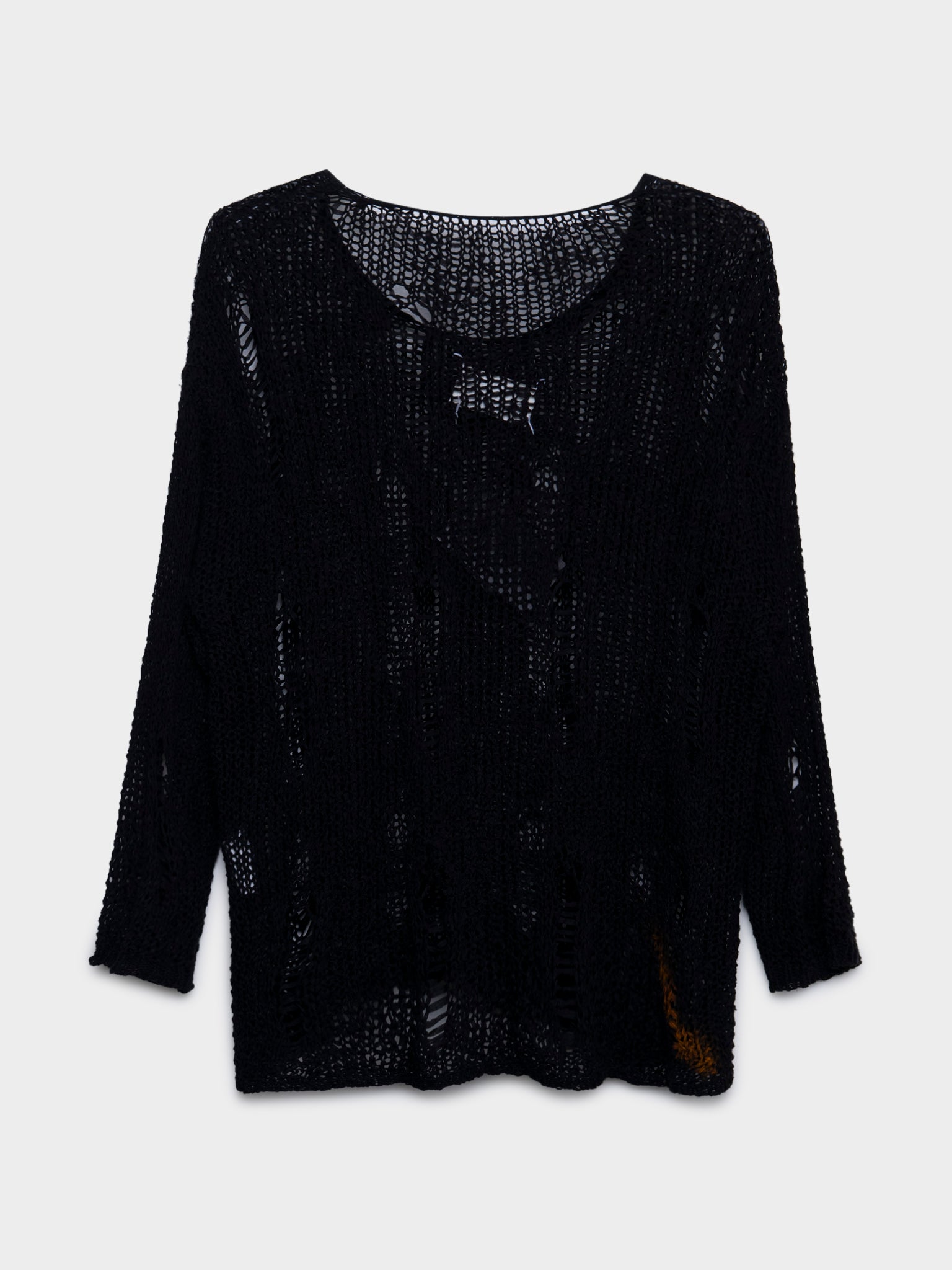 A thin, loosely knit sweater from Martin-era Margiela very reminiscent of a spider web that layers beautifully or worn alone to show some skin