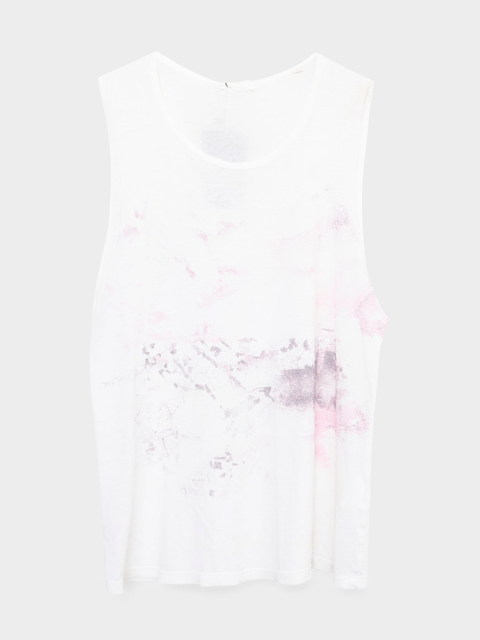 A white tank top from Helmut Lang's SS99 collection that's covered in paint streaks