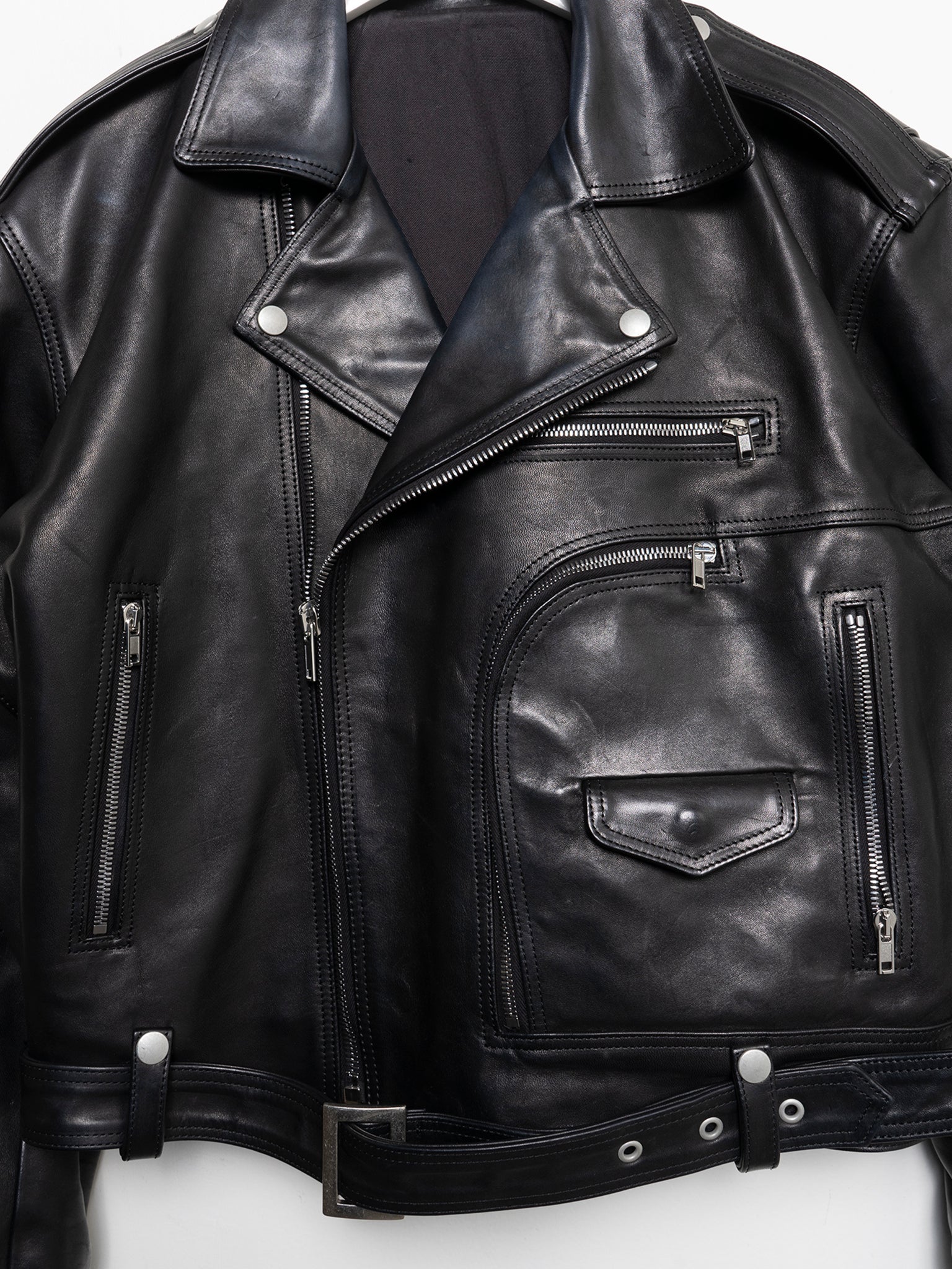 FW24 'Porterville' Cropped Horse Leather Jumbo Bauhaus Stooges Rider Jacket