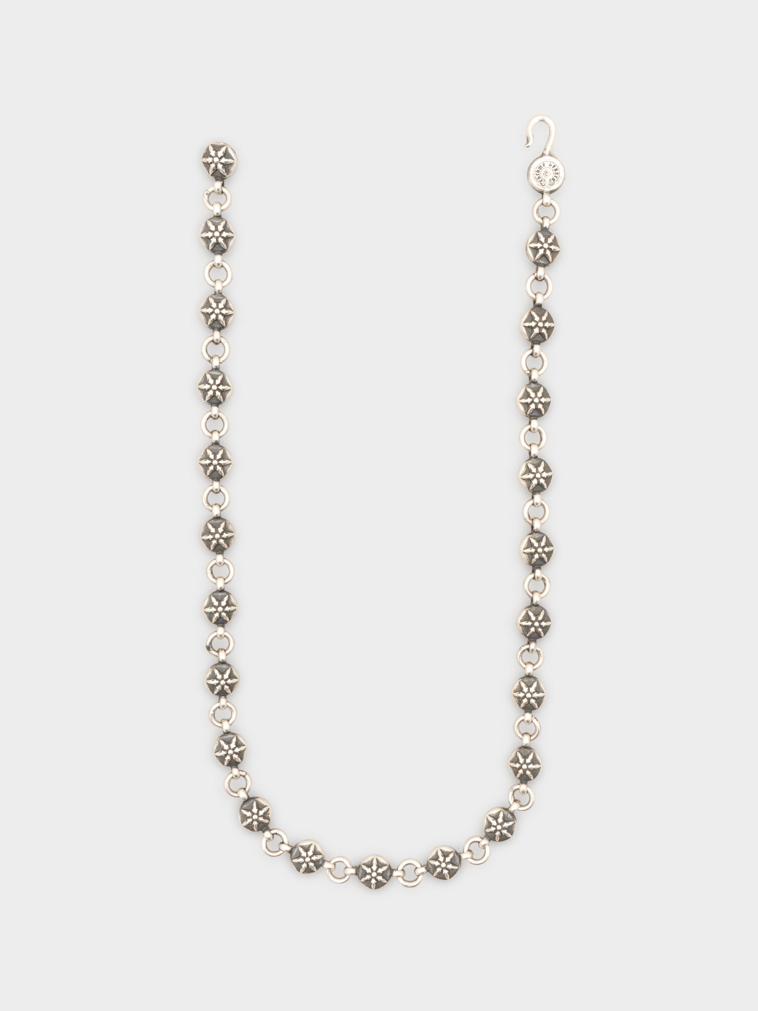A hefty sterling silver Chrome Hearts necklace that features ball charms with engraved stars linked together