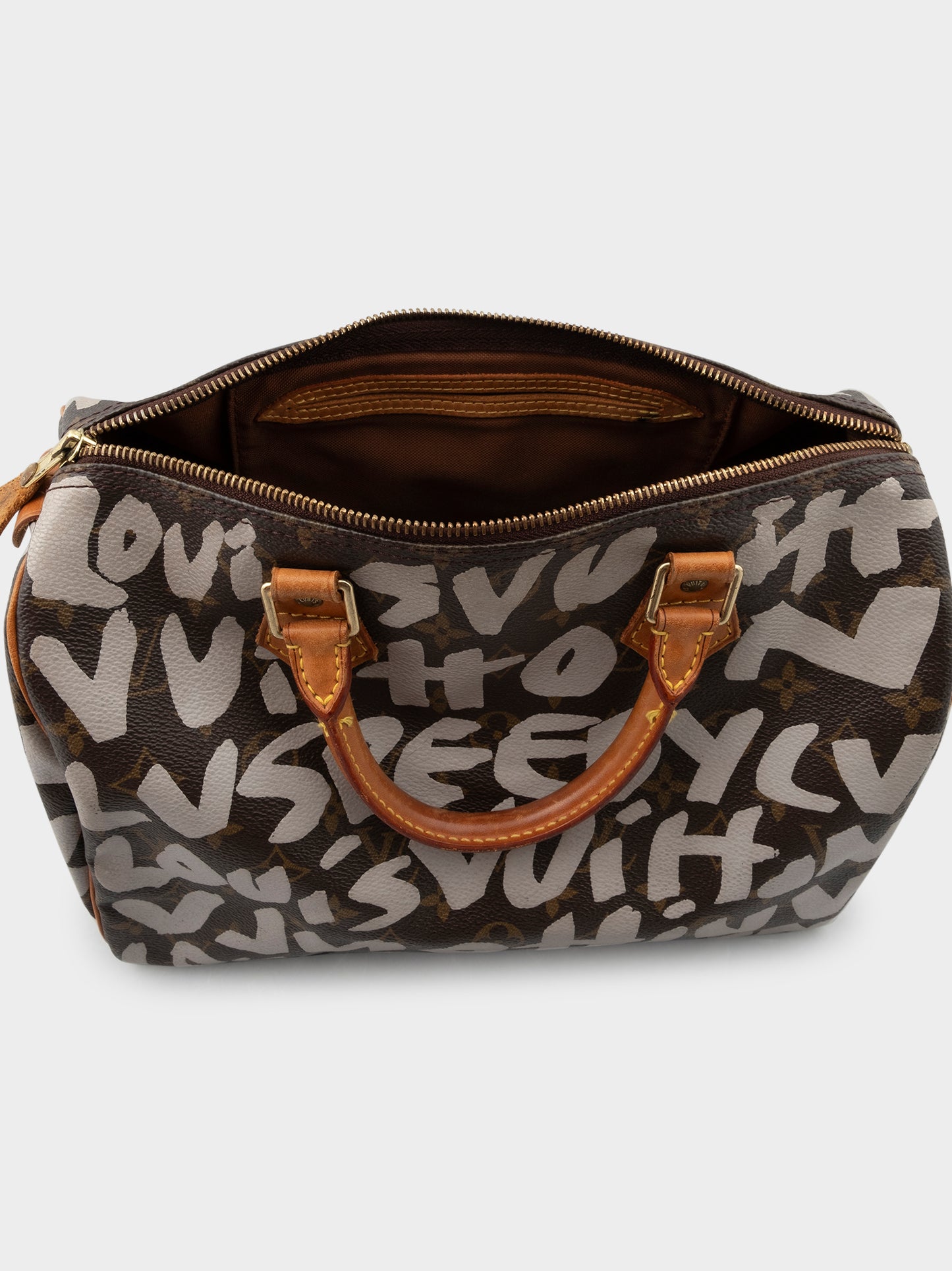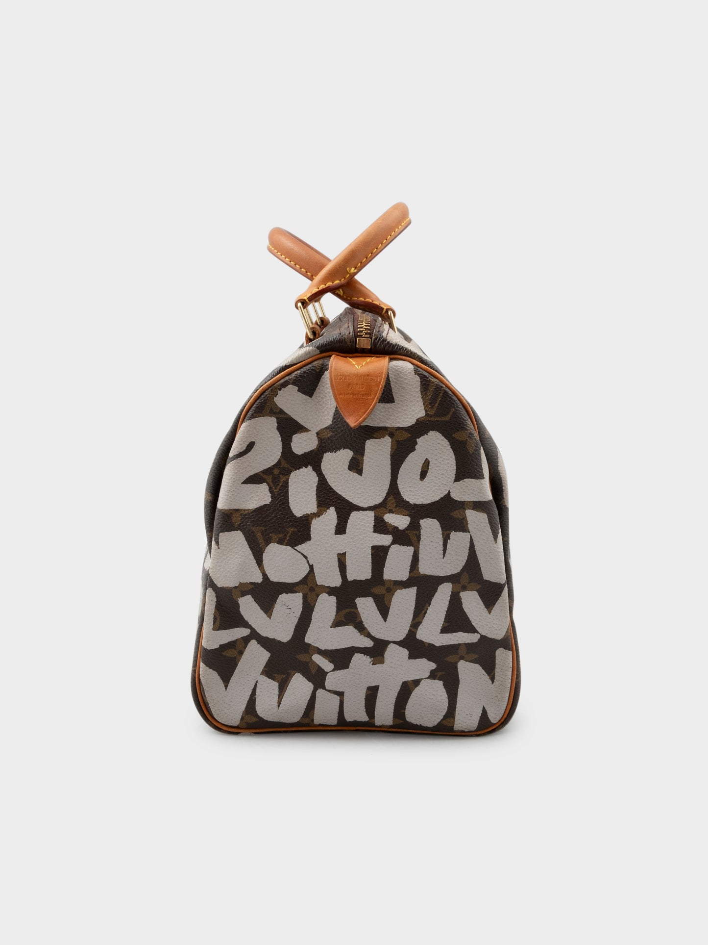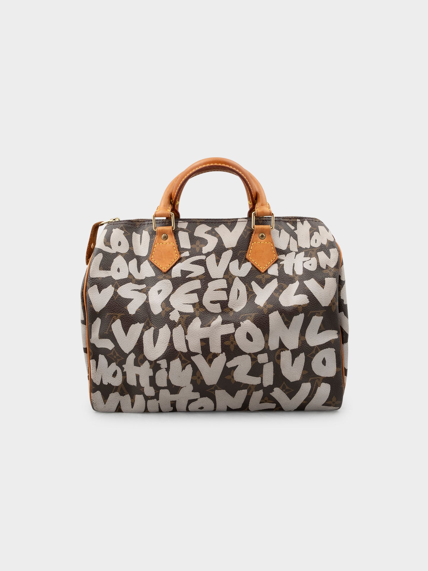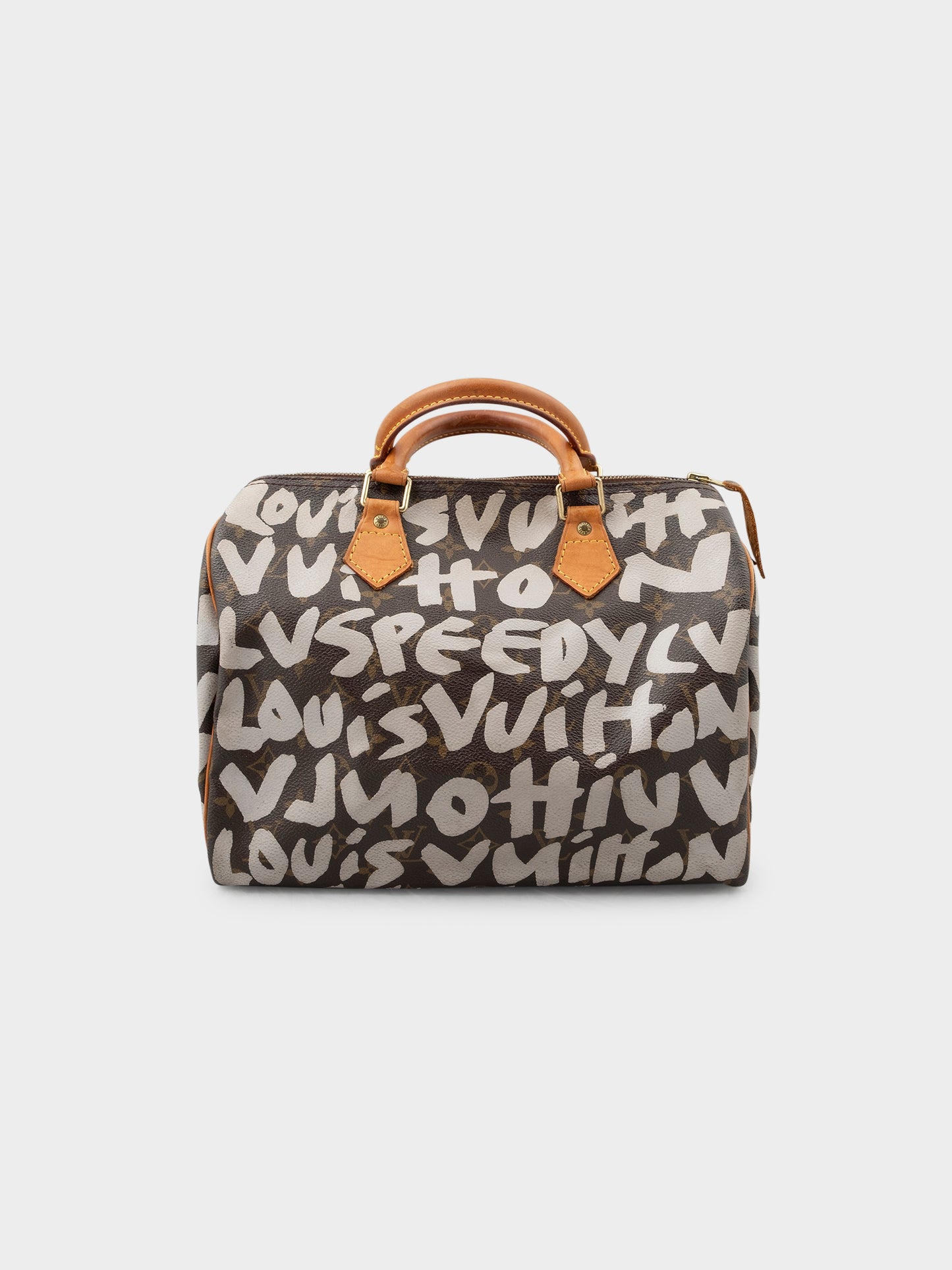 From the 2001 collaboration between Louis Vuitton and artist Stephen Sprouse comes the iconic Speedy 30 bag covered in Sprouse's signature graffiti style covering the bag.