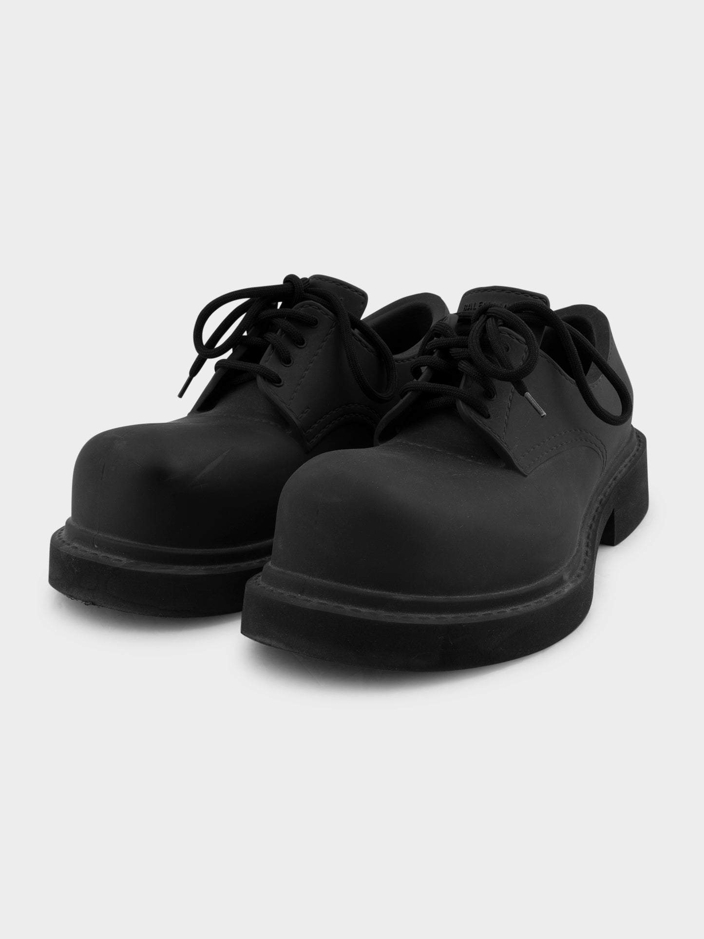A pair of Balenciaga Steroid derbies that feature an extremely exaggerated silhouette, as if on steroids.